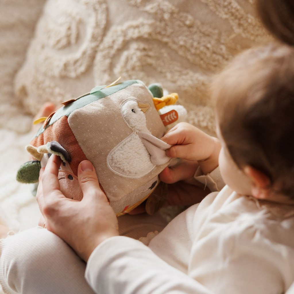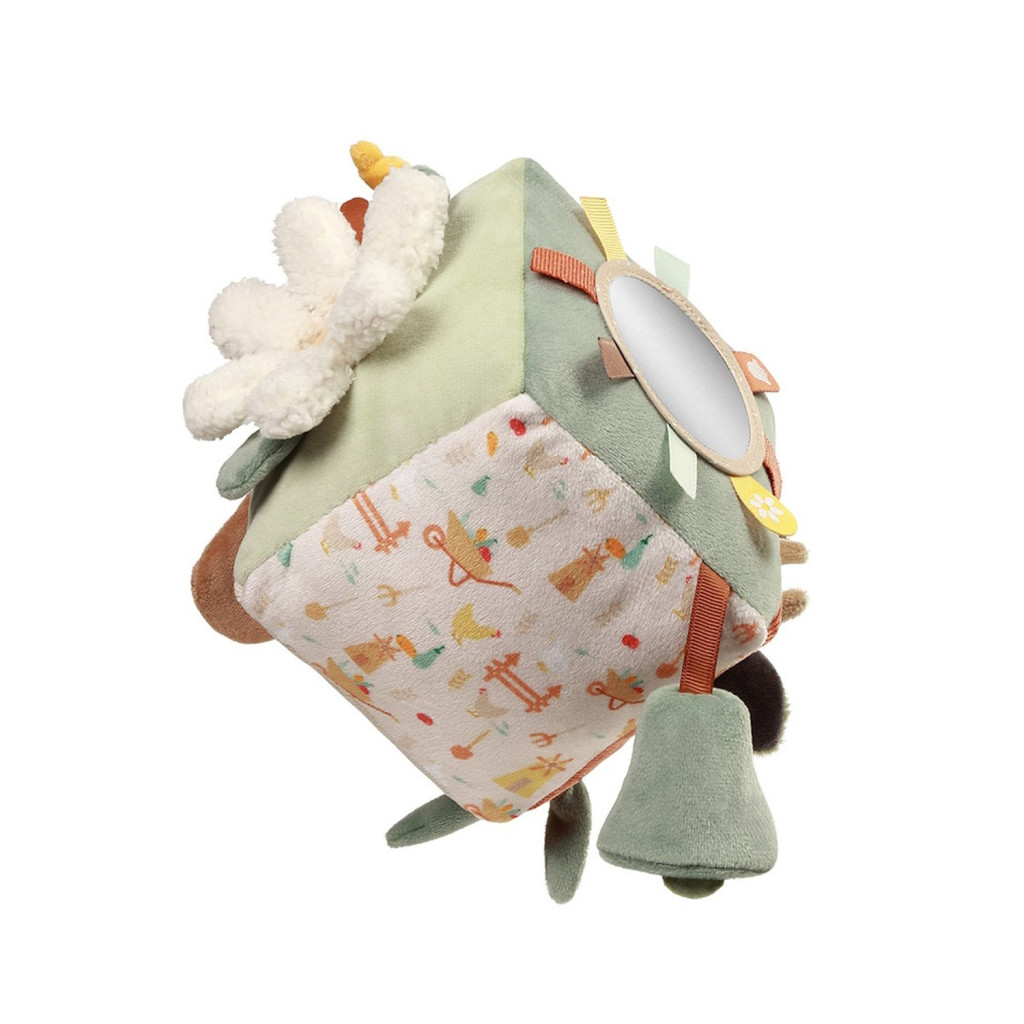 A multifunkcionális játékkocka minden oldala olyan elemeket rejt, amelyeket a kicsi önállóan felfedezhet. A farm ihlette részletek vonzzák a szemet és serkentik a képzeletet. A kocka hosszú időre leköti a kicsi figyelmét.