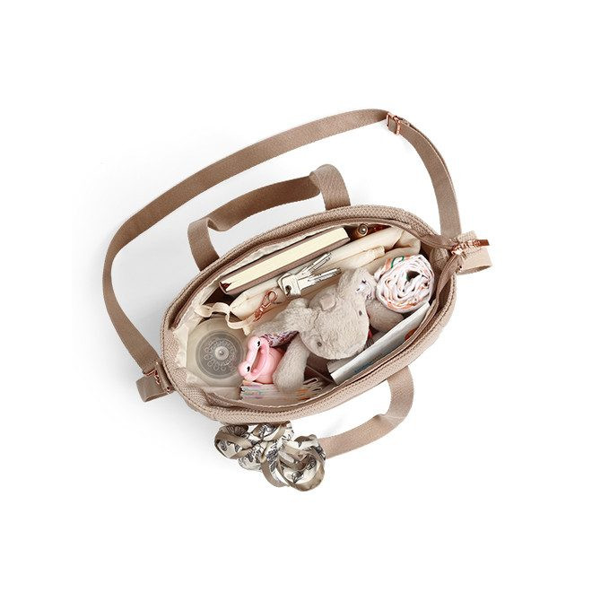 Nem kell sietned, hogy kulcsot vagy cumit keress a táskában. A praktikus tartónak köszönhetően mindig kéznél tarthatod tárgyaid.