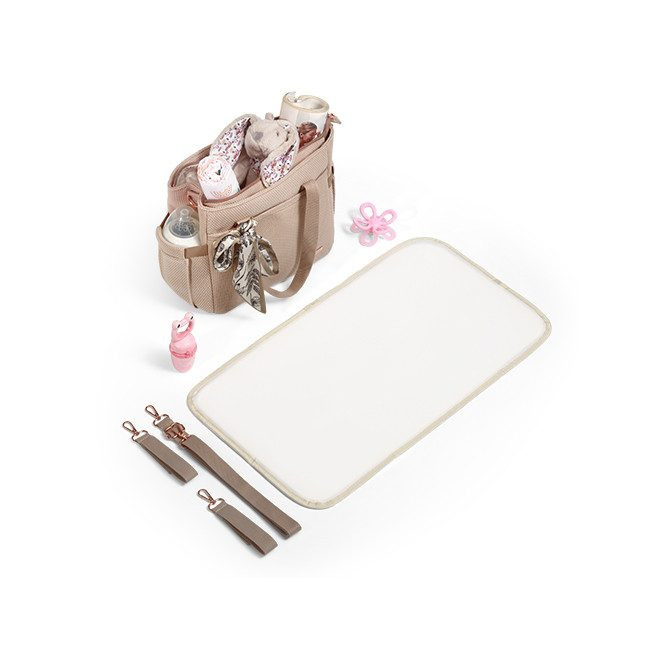 A táska belseje 9 praktikus zsebet, pelenkázómatracot és pántokat rejt.