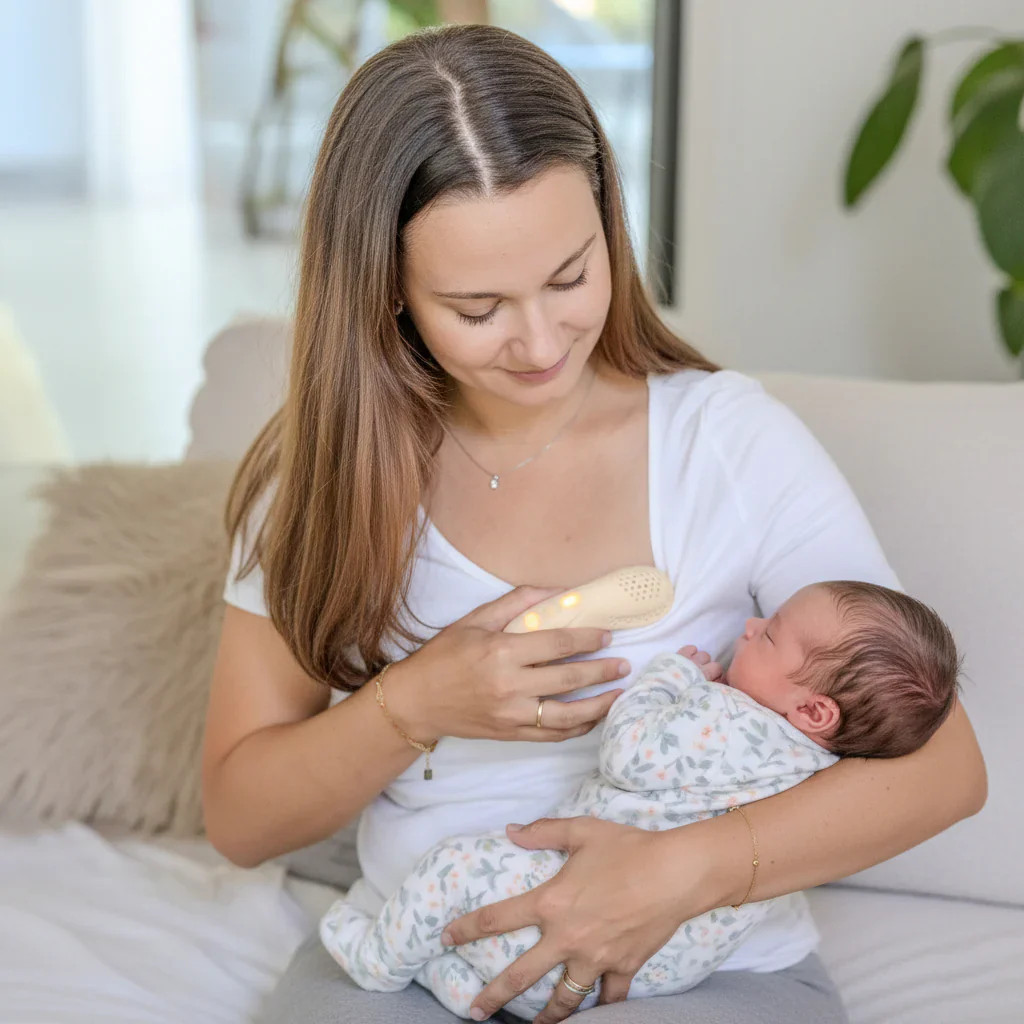 A Mumpülse 3 az 1-ben szoptató masszírozó készülék a szoptató anyák támogatására szolgál a kellemetlenségek enyhítésével és a tejáramlás természetes javításával. A fűtés, a hűtés és az 5 rezgési mód kombinációjával segít csökkenteni a vérbőséget, oldani a feszültséget, és elősegíti a kényelmesebb szoptatást vagy fejést. Kompakt, ergonomikus kialakítása tökéletesen illeszkedik a kézbe, és lehetővé teszi, hogy pontosan megcélozza az érzékeny területeket a bimbóudvar körül vagy a mell tövében.