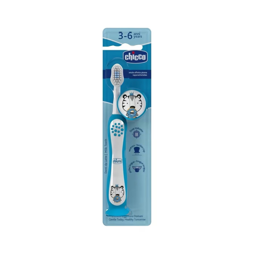 Chicco Fogkefe 3-6 év tejfogakhoz tapadókorongos Tiger kék #CH01208311
