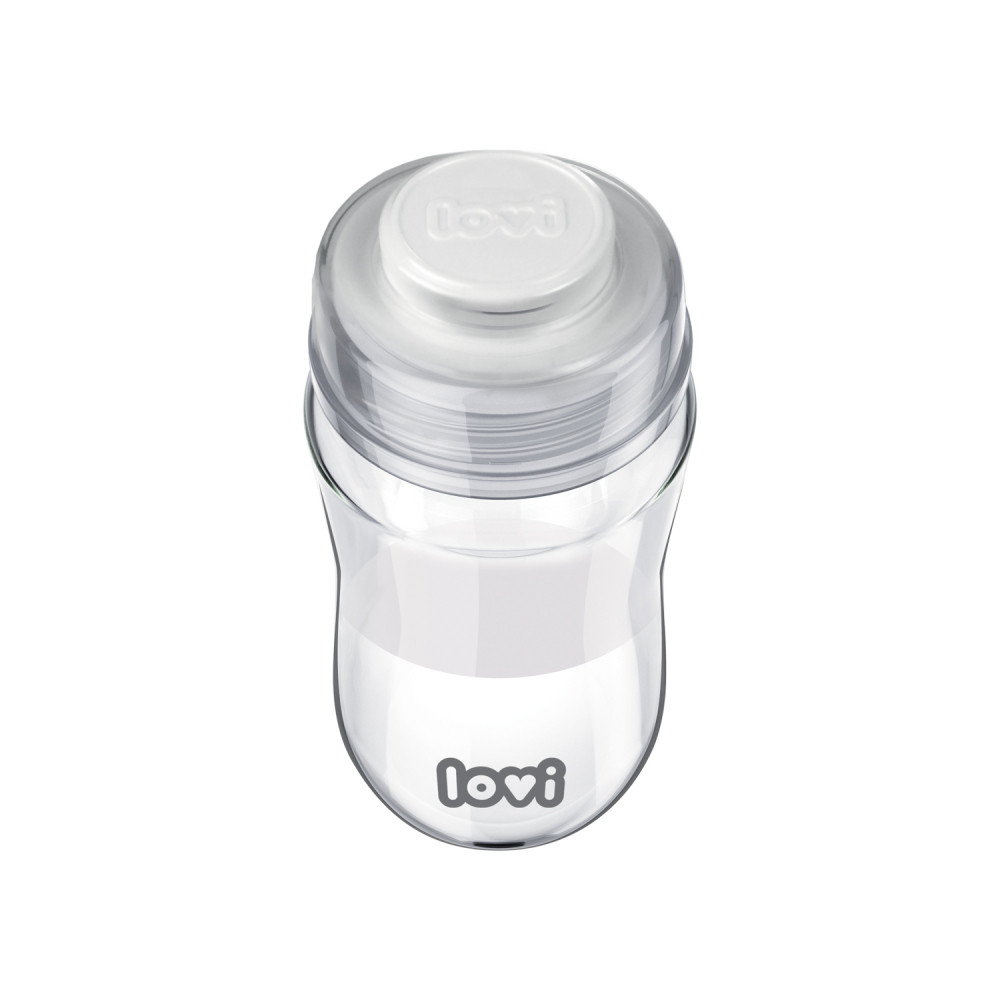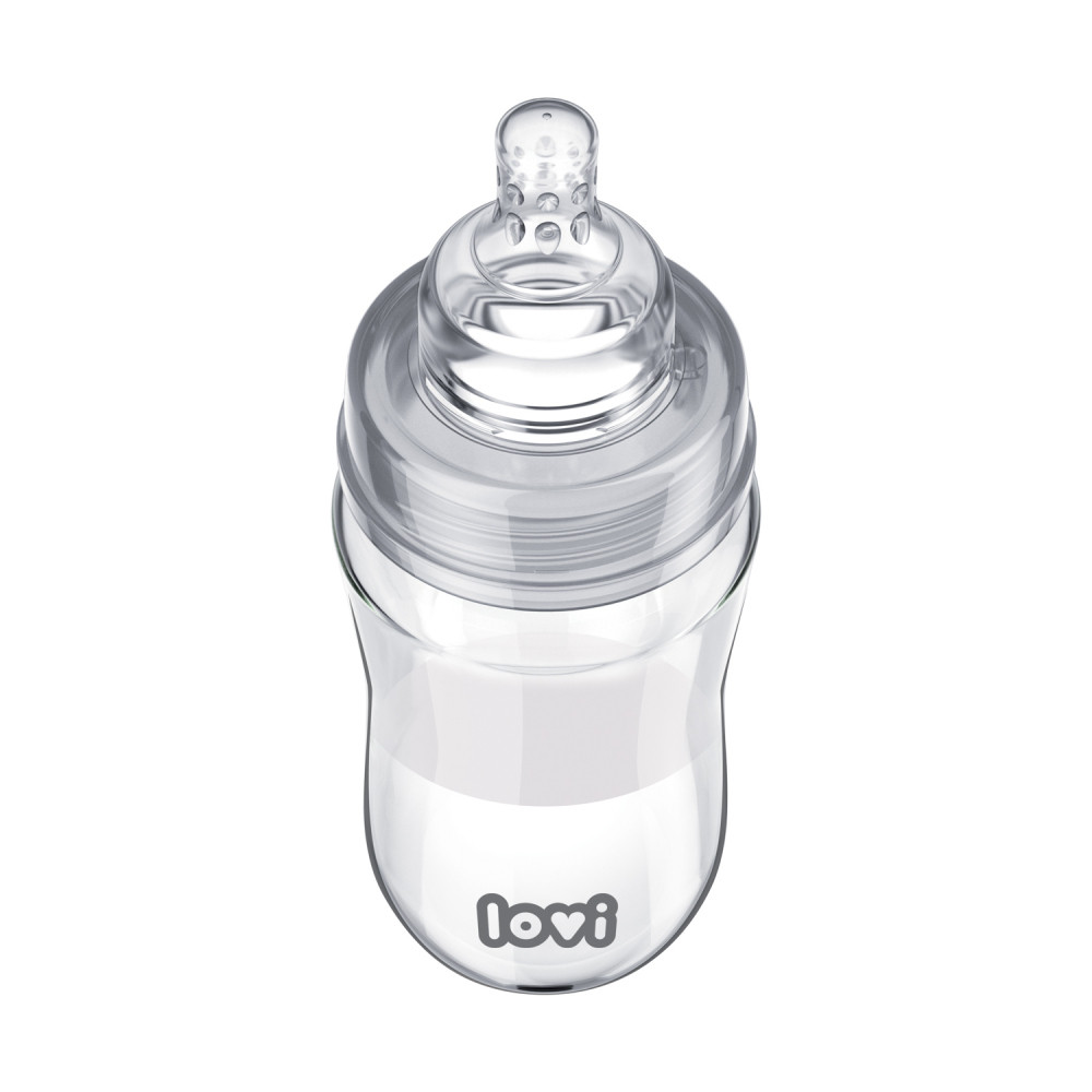 A LOVI üveg cumisüveg dinamikus etetőcumival kialakításának köszönhetően támogatja a szoptatást, és nem zavarja a baba szopóreflexét. Űrtartalom: 250 ml, BPA-mentes.