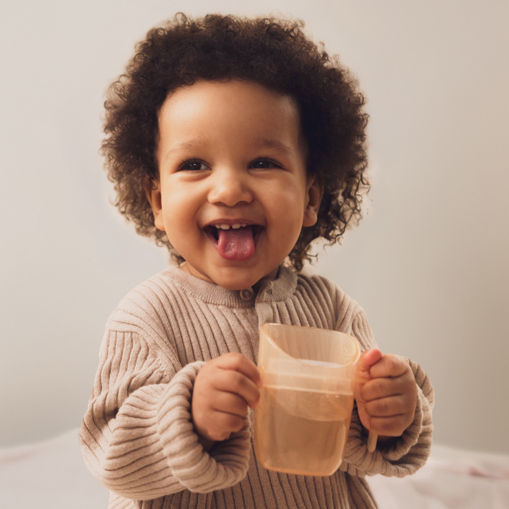 Ezáltal ideális választás első pohárnak. Kis méretének – 130 ml-es űrtartalommal a betét használatával – és ergonomikus fogantyúinak köszönhetően a LOVI GENIUS Nude itatópohár tökéletes azoknak a gyermekeknek, akik most ismerkednek a pohárhasználattal. 6 hónapos kortól ajánlott, amikor a gyermek már önállóan tud ülni.