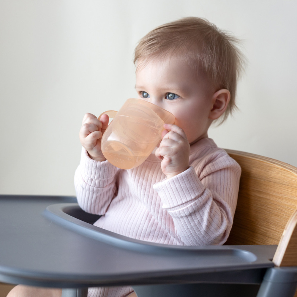 Lehetővé teszi a folyadékmennyiség ellenőrzését – az átlátszó pohárfalaknak és a betétnek köszönhetően a gyermek látja az italt, a szülő pedig nyomon követheti, mennyit ivott.