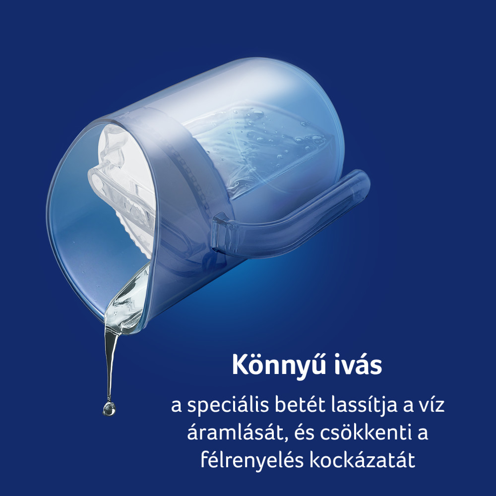 Alkalmazkodik a gyermek fejlődéséhez – amint a gyermek megtanul önállóan inni a pohárból, a betét kivehető, így a pohár nyitott itatópohárként használható.