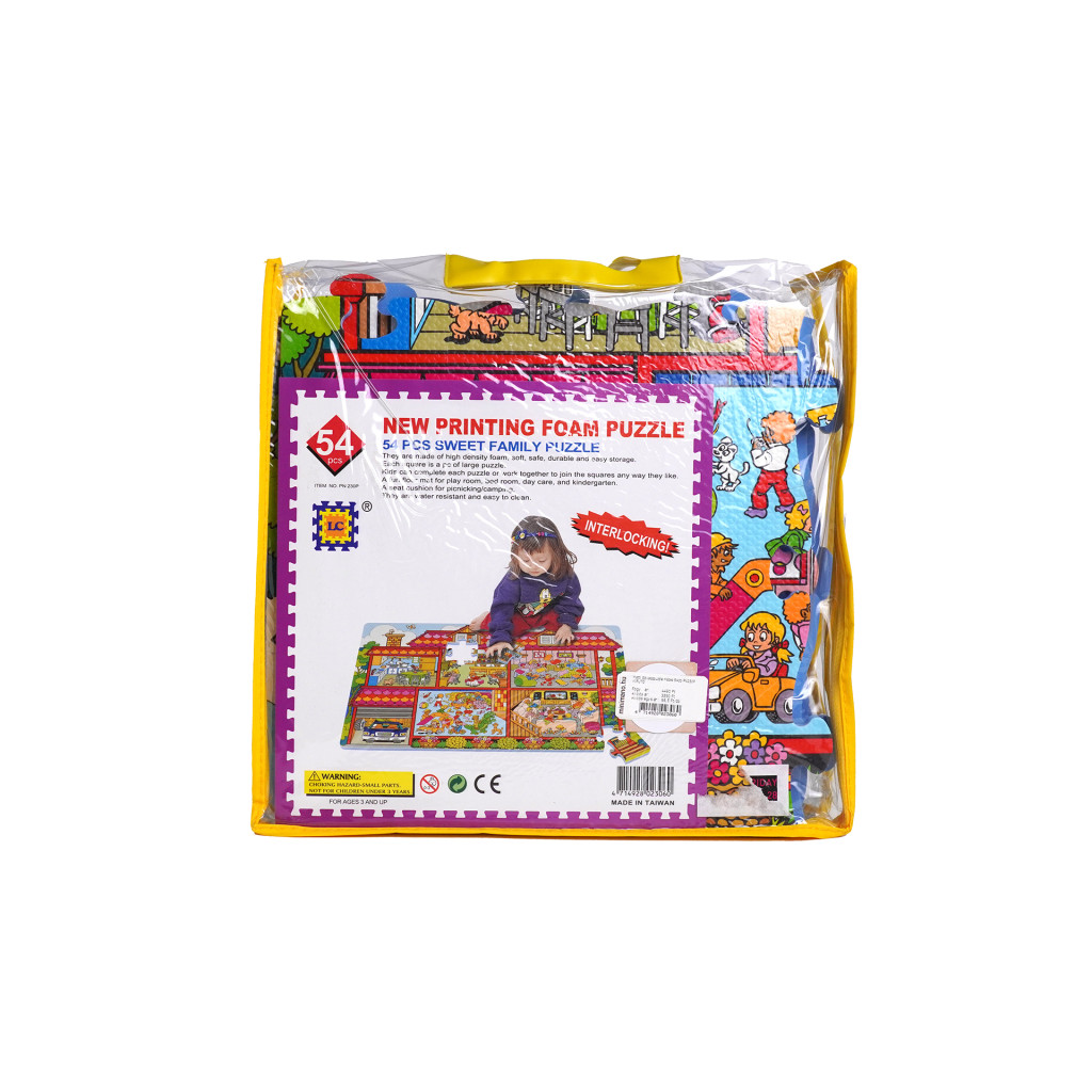 54 darabos szivacspuzzle szőnyeg. Puha, biztonságos, vízálló kivitelezés. Könnyen tisztítható.