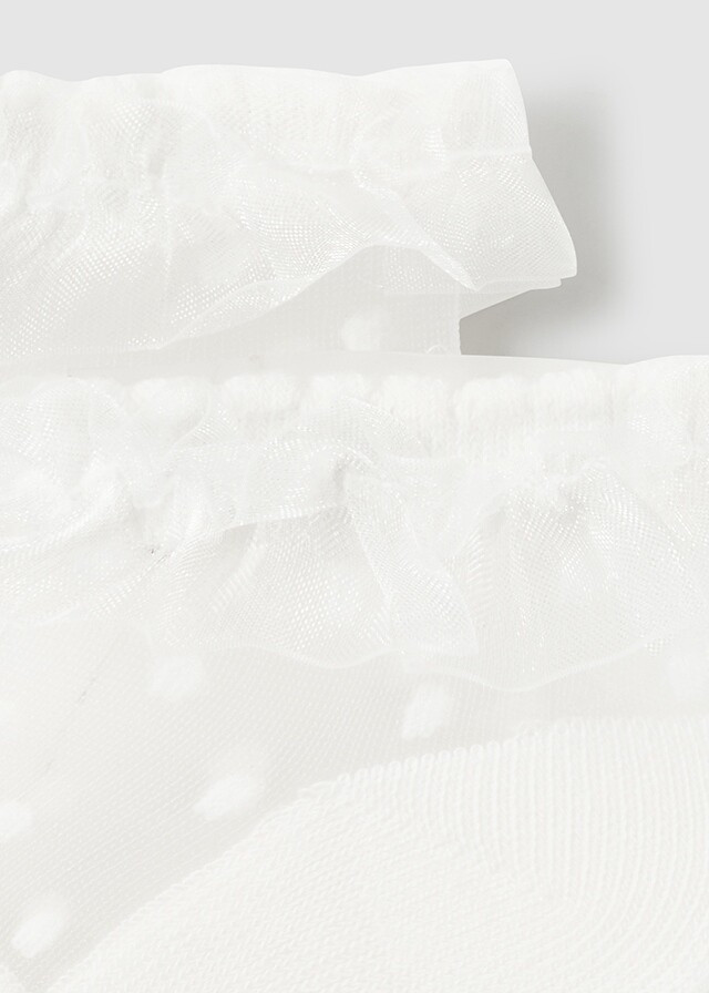 A finom csipkével és fodros szegéllyel, szakértői kidolgozással készült Mayoral zoknik egyszerre stílusosak és kényelmesek. Kiváló minőségű anyagokból készültek, így bármilyen öltözékhez eleganciát kölcsönöznek.