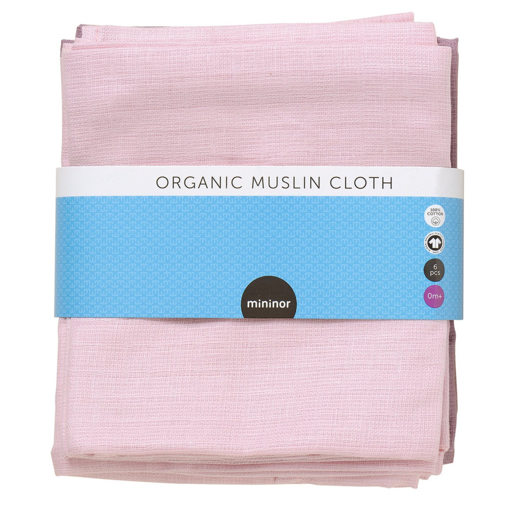 Mininor biopamut textilpelenka 70x70cm 6db - rózsaszín/lila #10264