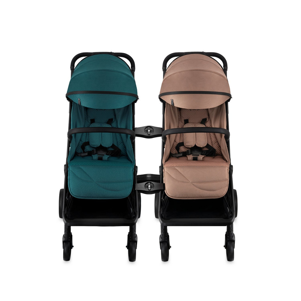 A megvásárolható adapterek lehetővé teszik két különálló babakocsi összekapcsolását egyetlen ikerbabakocsivá
