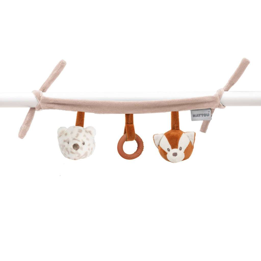 Útrakelsz a babáddal? Ez a puha babakocsi játék leköti kicsit útközben. Könnyen rögzítheti az akasztót a babakocsihoz vagy az autósüléshez. A játék 3 szórakoztató elemet tartalmaz, így a baba élvezheti a különféle meglepetések felfedezését és megragadását. A mozgás által keltett kellemes hangok mellett serkentik a baba hallás- és mozgásfejlődését.