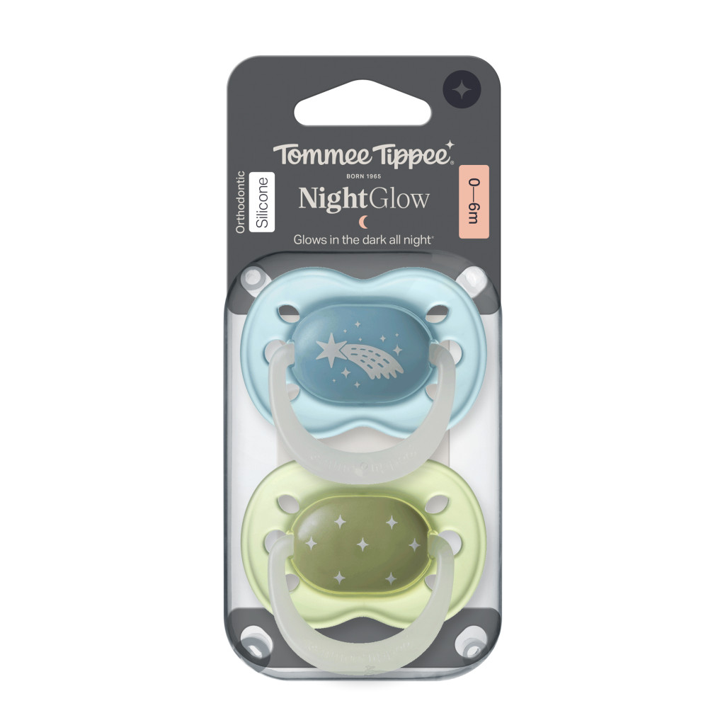 Tommee Tippee Night Glow éjszakai nyugtató cumi sterilizáló tokkal 0-6 hó 2 db #433662 #kék-zöld