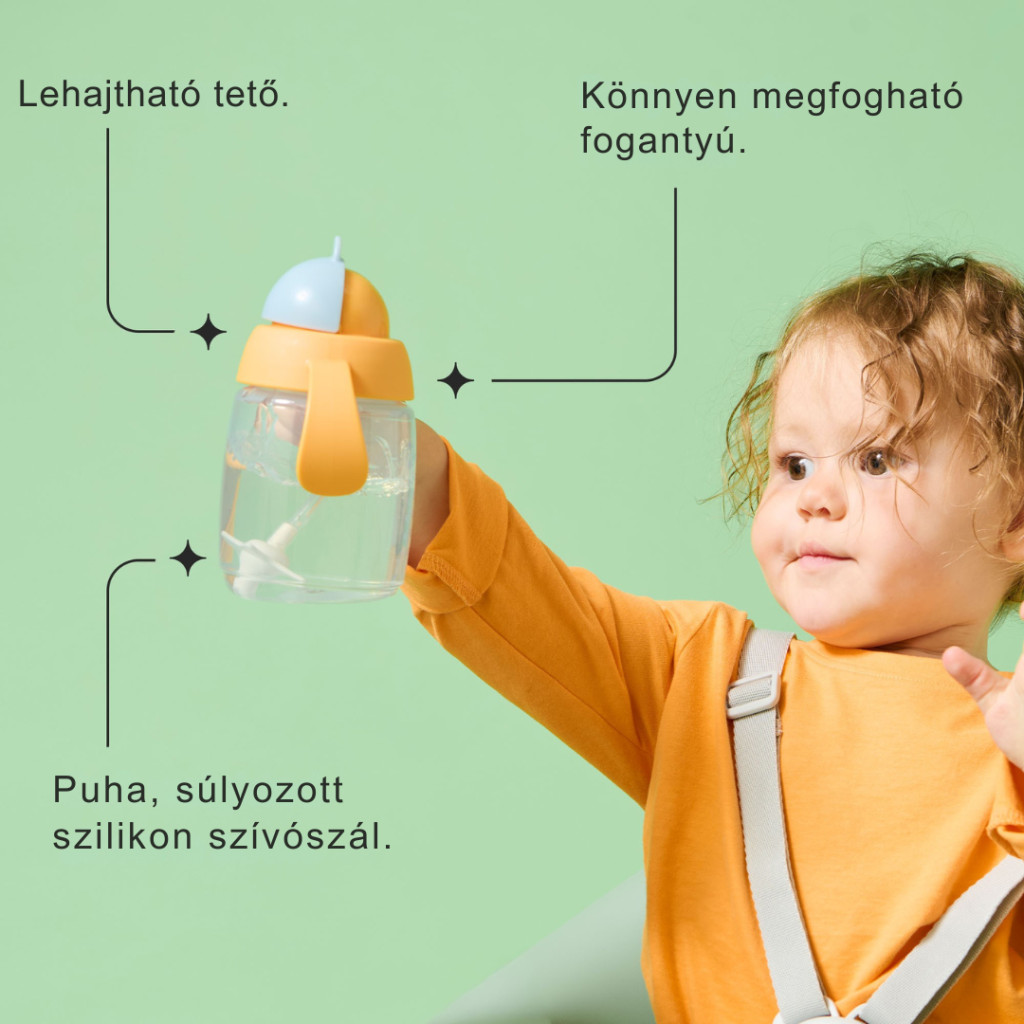 A Tommee Tippee súlyozott szívószálas pohár tökéletes választás a babák számára 6 hónapos kortól, amikor elkezdenek ismerkedni a szívószálas ivással. A puha, súlyozott szilikon szívószál lehetővé teszi, hogy bármilyen szögből kényelmesen ihassanak, így mindig sikerélményt ad a kicsiknek. A pohár 240 ml-es űrtartalommal rendelkezik, amely ideális a hozzátáplálás és a folyadékpótlás támogatásához.Az okos, csöpögésmentes, két részes szelep megakadályozza a kilöttyenést még akkor is, ha a poharat fejjel lefelé fordítják vagy erősebben megrázzák. Az ergonomikus, könnyen fogható fogantyúk segítik a kéz-szem koordináció fejlődését, miközben a gyermek megtanulja önállóan felemelni és tartani a poharat. A praktikus mérce jelölések segítenek a szülőknek követni, mennyit ivott a baba. A pohárhoz tartozik egy szívószál tisztító kefe, és minden része könnyen tisztítható, sterilizálható, valamint mosogatógépben mosható. A termék BPA-, BPS-, PVC-, ftalát- és nitrozaminmentes, így teljesen biztonságos a kicsik számára.  Mérce jelölések: Könnyen ellenőrizhető, mennyit ivott a baba. Csöpögésmentes szelep: Az okos, két részes szelep megakadályozza a szivárgást, még akkor is, ha a poharat fejjel lefelé fordítják vagy megrázzák. Könnyen fogható fogantyúk: Kényelmesen tartható és emelhető, miközben a gyermek új ivási készségeket tanul. Egyszerű tisztítás: A szívószál tisztító kefével együtt érkezik. Minden alkatrésze mosogatógépben mosható, sterilizálható és BPA-mentes.