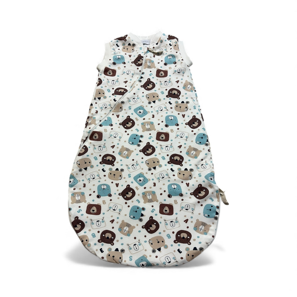 Wikids pamut hálózsák 2 rétegű ujjatlan #68-74 világoskék-mogyi pöttyös macis