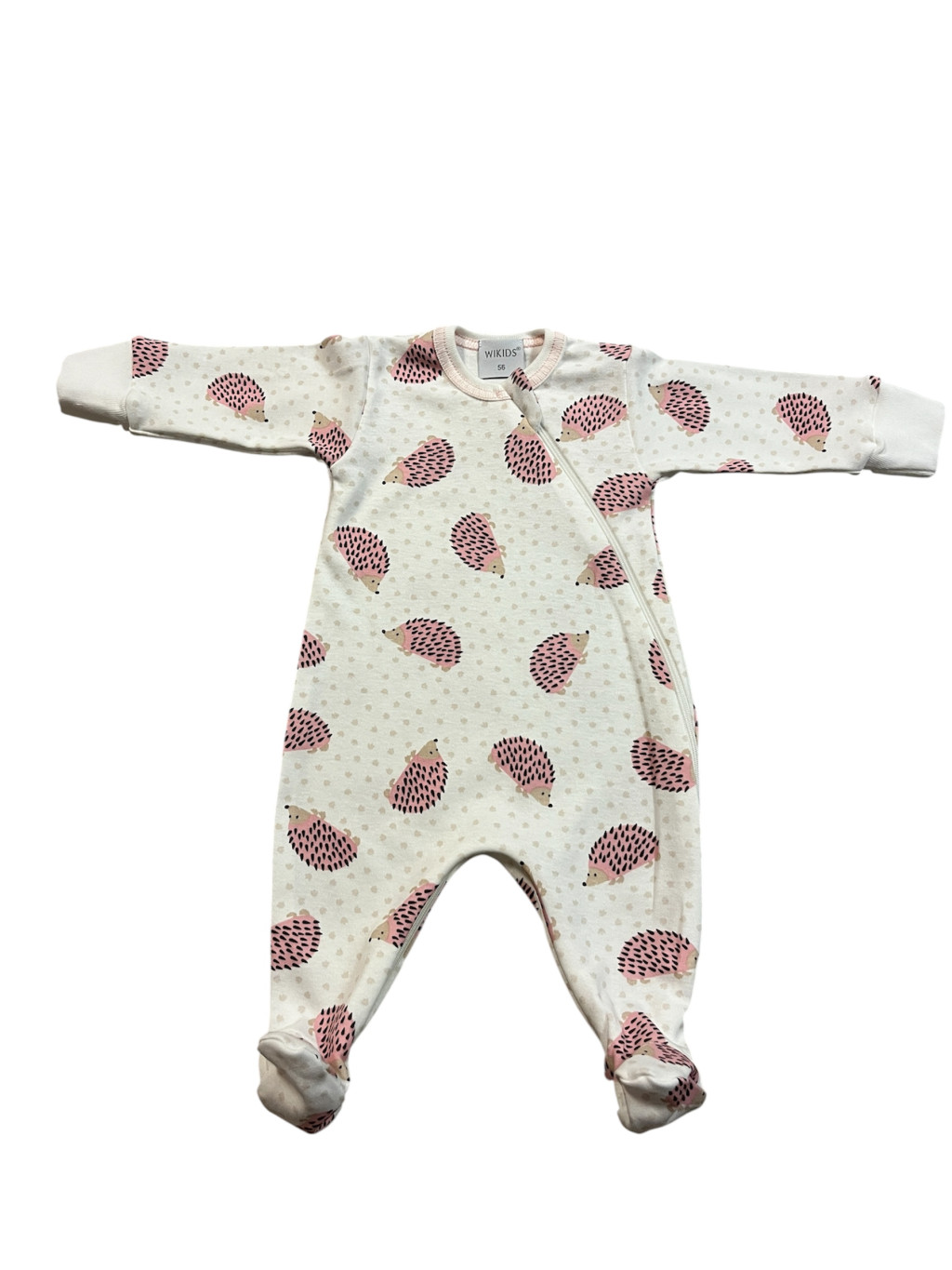 Wikids pamut hosszú ujjú rugi #50 bézs-mályva pöttyös sünis
