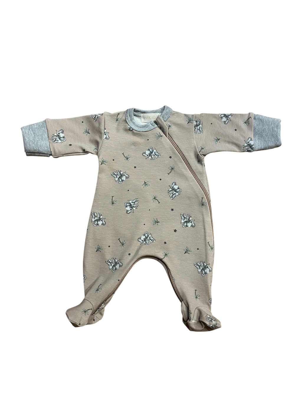 Wikids pamut hosszú ujjú rugi #50 mogyi-szürke elefántos pálmafás