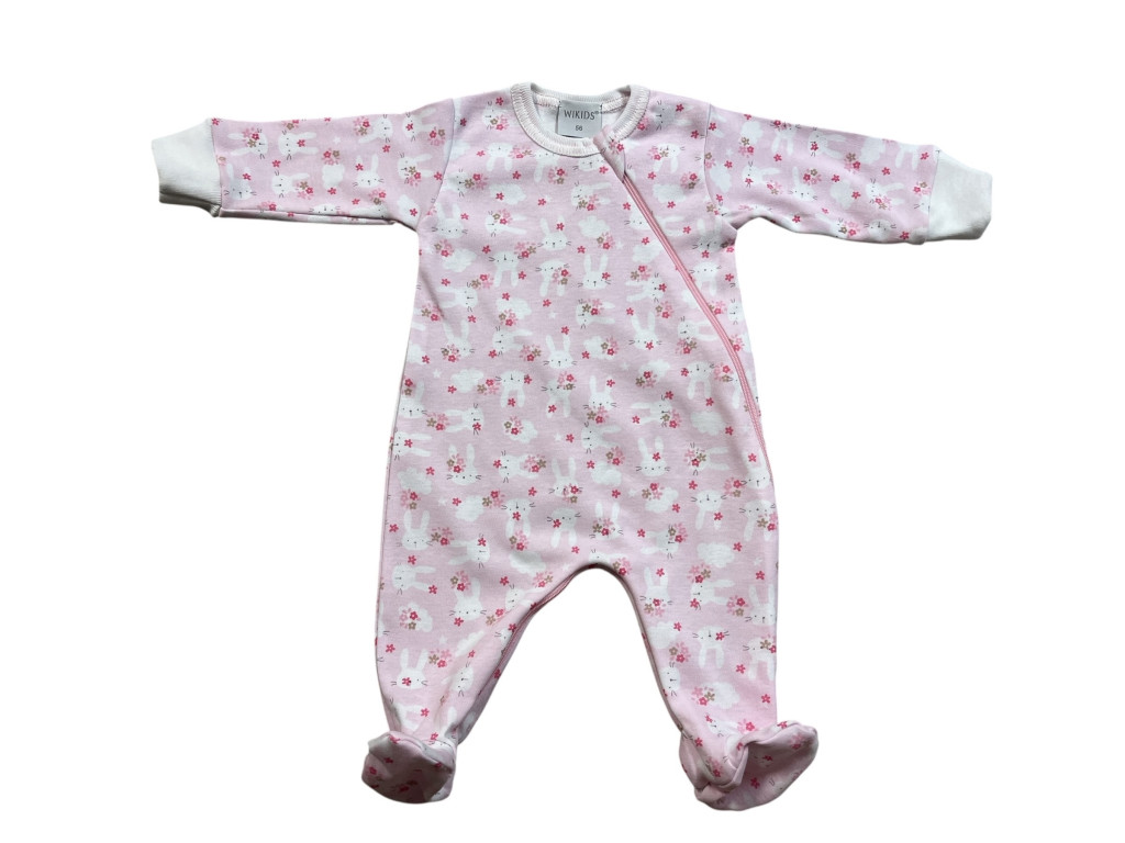 Wikids pamut hosszú ujjú cipzáras rugi #44 rózsa-nyuszis virágos