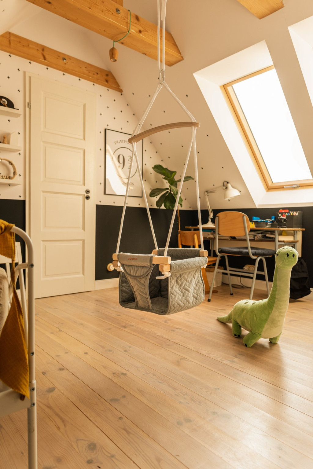 A hintát ajtófélfára, mennyezetre és akár a kertben egy fára is fel tudod szerelni. Tudsz tőlünk vásárolni fába szerelhető hintakampót is.