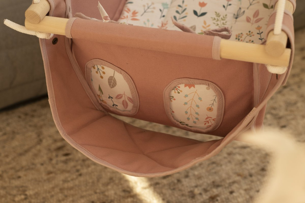 Használata akkor ajánlott, amikortól a baba lábát kidugtuk a hinta elülső nyílásain. A nagyobb babák esetében (ha már ül) csak az alvás idejére ajánljuk a lábtartó használatát. A lábtartó két pozícióba állítható patentok segítségével. Az alapbeállítás, a hinta alsó részének meghosszabbítása.