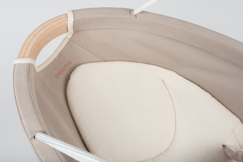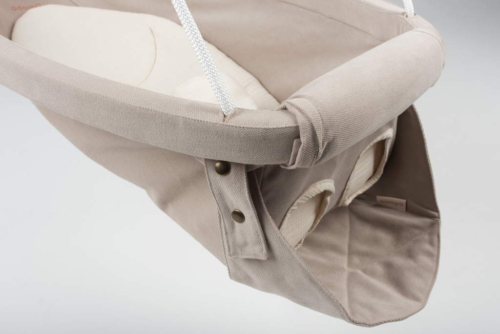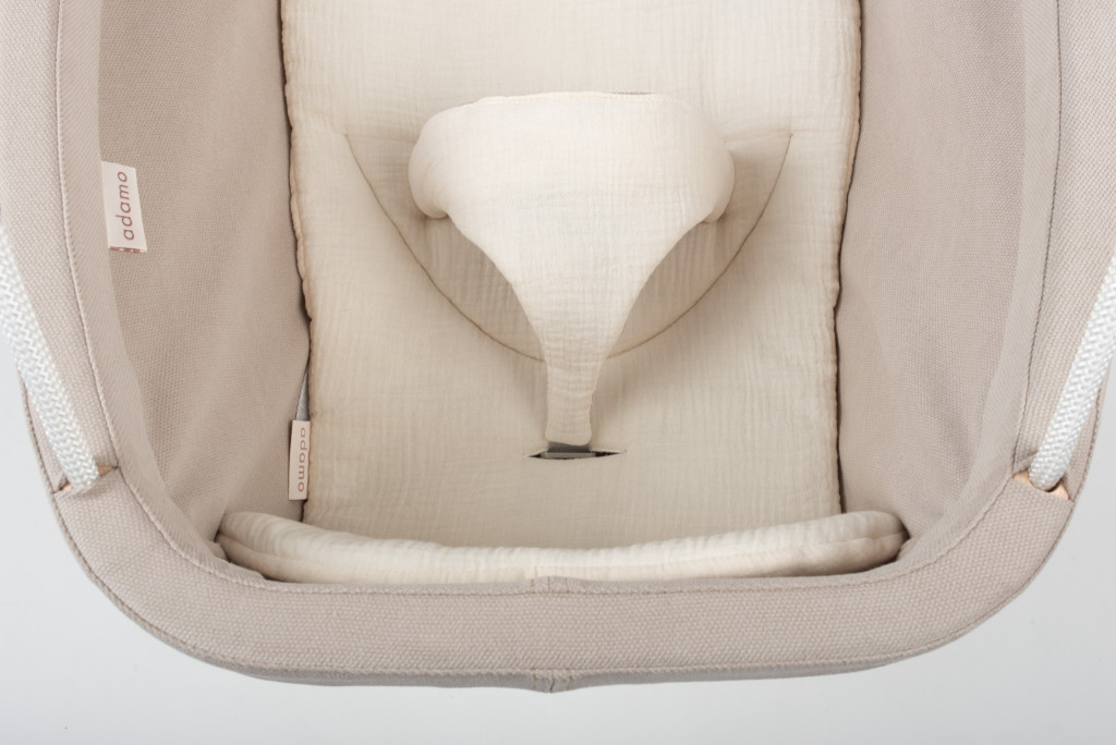 Innovatív megjelenésével a tökéletességre és a minél egyszerűbb, biztonságosabb használatra törekedtünk!  Szerkezetében teljesen eltérő a klasszikus Adamo babahintától. A hinta huzat része stabilan rögzített, úgy ahogyan a kötélvégződések is.  A lekerekített, ívelt hinta keretet, 100% környezetbarát, mosható, ÖKO-TEX minősítésű puha textillel borítottuk, a legjobb alvási és pihenési élmény érdekében.