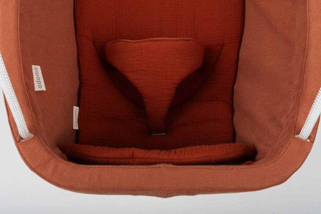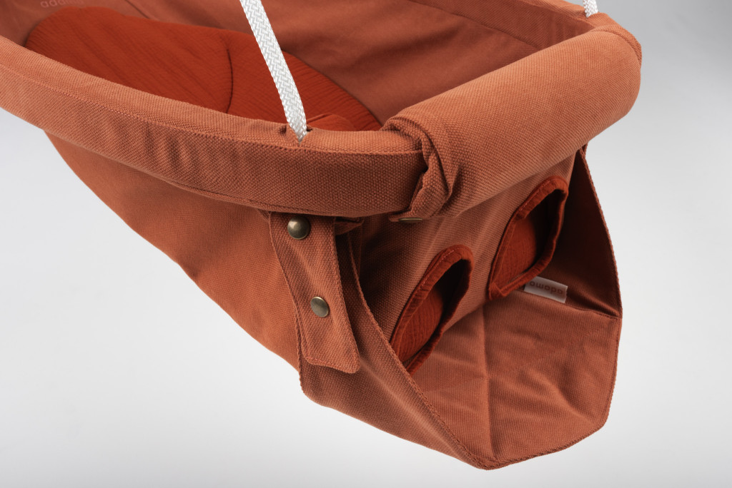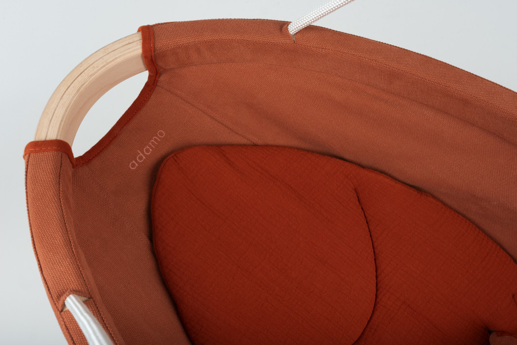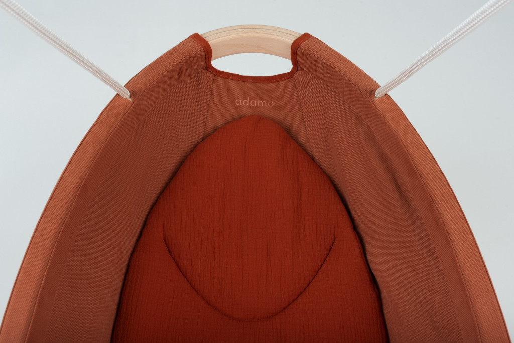 Innovatív megjelenésével a tökéletességre és a minél egyszerűbb, biztonságosabb használatra törekedtünk!  Szerkezetében teljesen eltérő a klasszikus Adamo babahintától. A hinta huzat része stabilan rögzített, úgy ahogyan a kötélvégződések is.  A lekerekített, ívelt hinta keretet, 100% környezetbarát, mosható, ÖKO-TEX minősítésű puha textillel borítottuk, a legjobb alvási és pihenési élmény érdekében.
