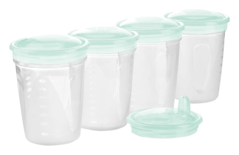 Anyatej hűtésére és fagyasztására is alkalmas, többszöri használatra tervezett, BPA-mentes poharak. A készlet tartalmaz egy kiegészítő fejet, melynek szájrésze szoptatásra/itatásra alkalmas. Egészségre ártalmas anyagoktól mentes műanyagból készült, ezért mikrohullámú sütőben is melegíthető.