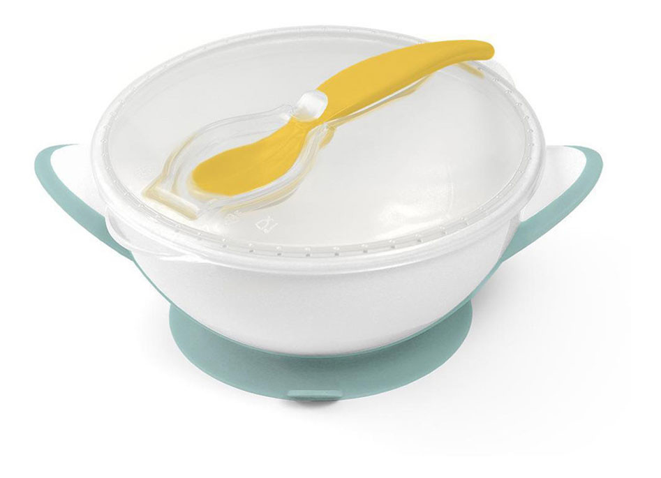 Babyono tapadós-fedeles Tányér -kanállal #zöld #1063-04