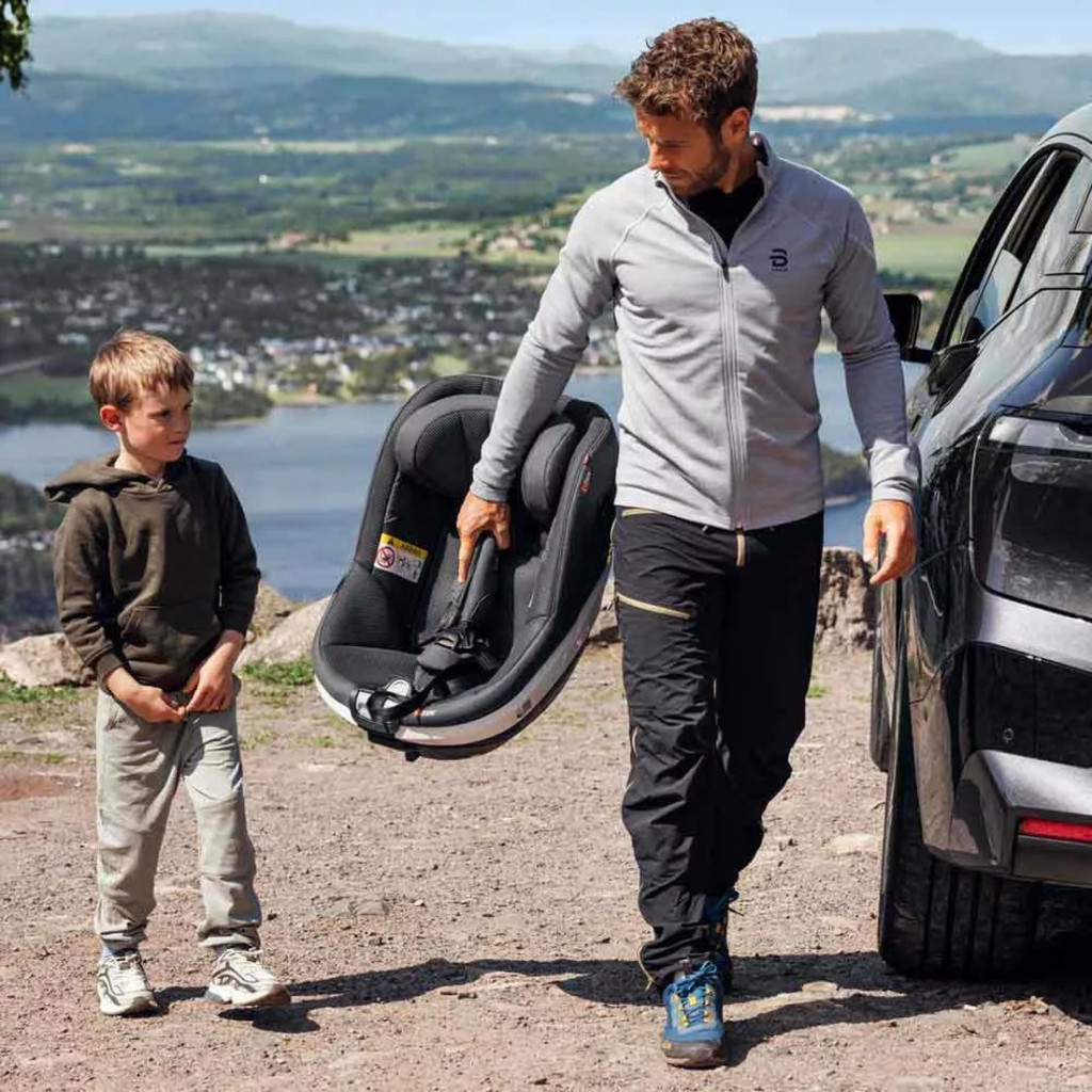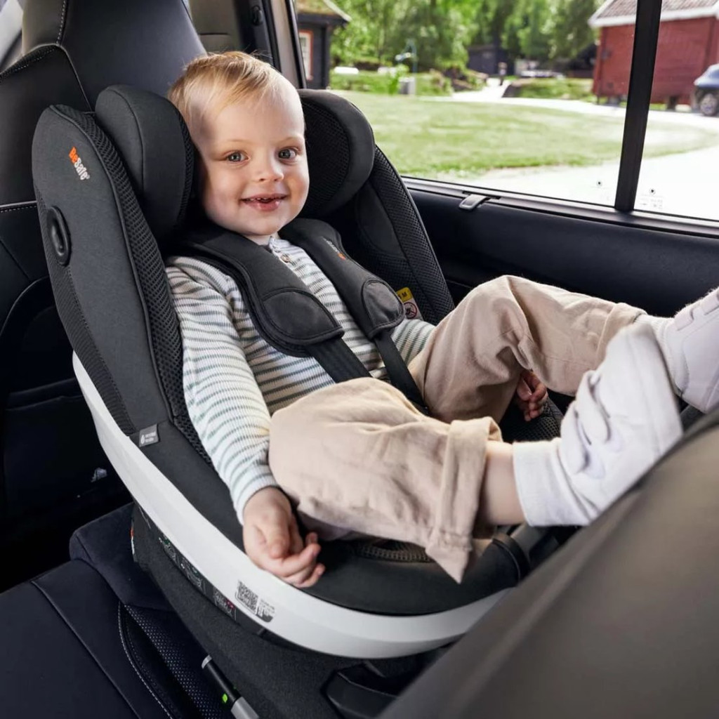 360°-ban elforgatható kisgyermekülés. 125 cm-ig és 22 kg-ig (körülbelül 6 éves korig) használható, intelligens blokkoló mechanizmussal a biztonságos, hosszú, menetiránynak háttal történő utazáshoz.