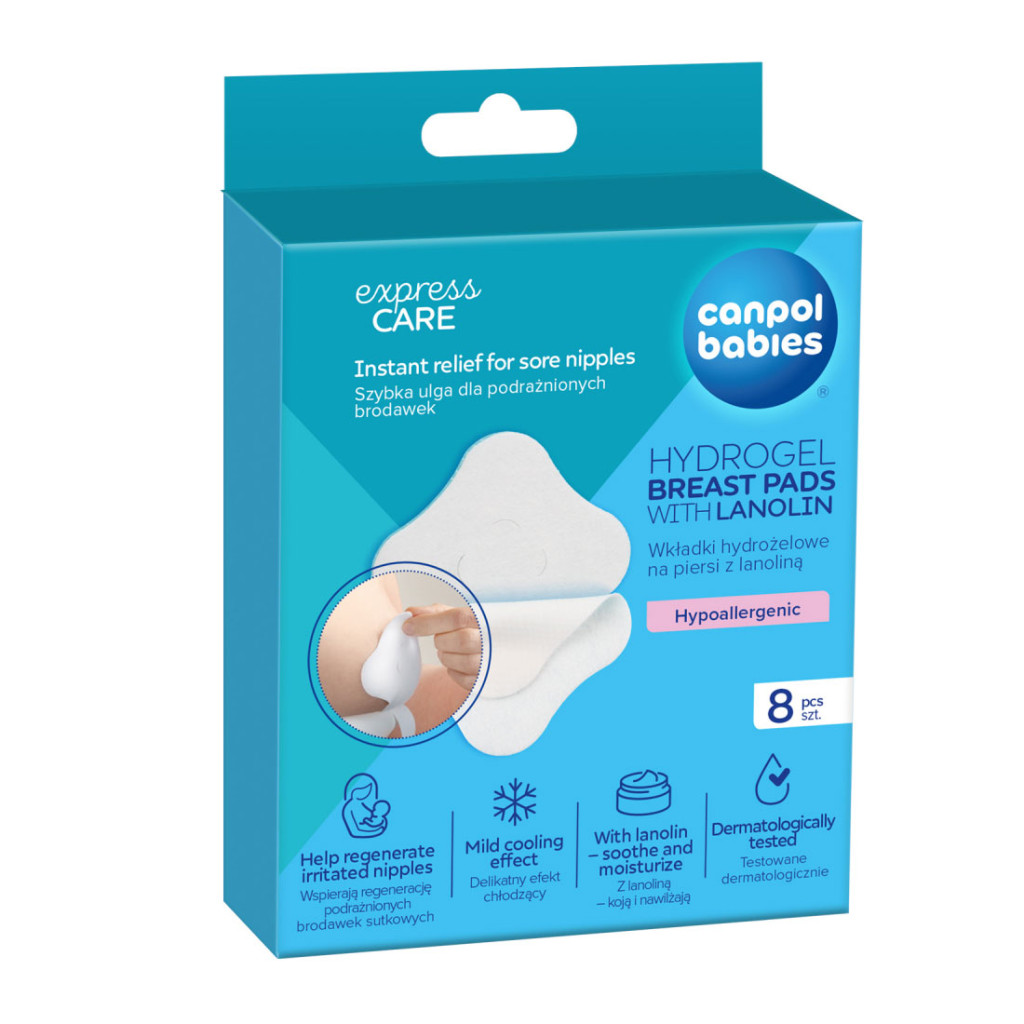 Nyugtató hidrogél mellpárnák lanolinnal - gyorsan enyhíti az irritált mellbimbókat, hidratál és felgyorsítja a gyógyulást. Gyengéd hűsítő hatás.