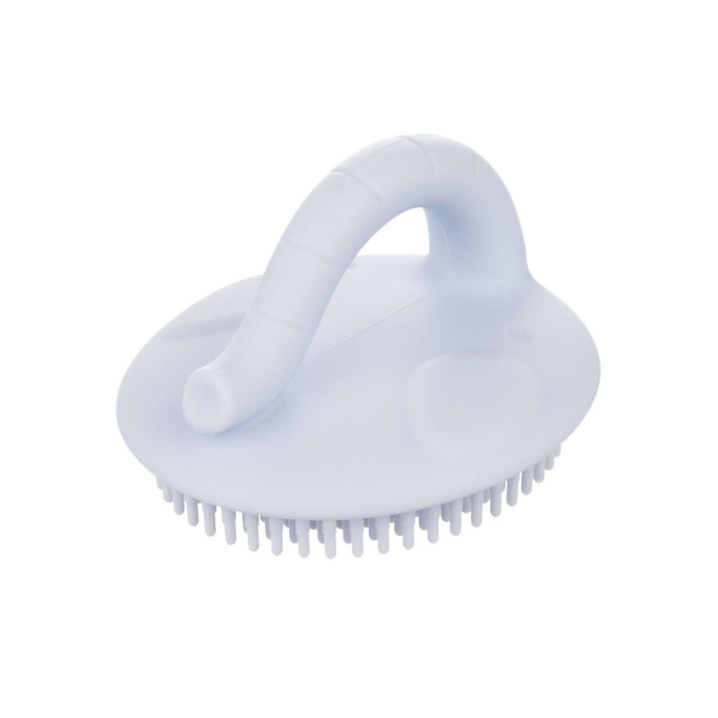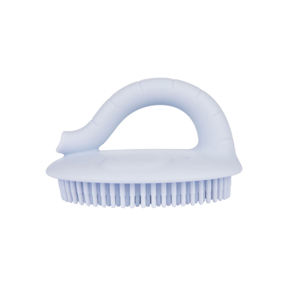 A szilikon fürdőkefét babafürdetéshez tervezték. Gyengéden masszírozza a bőrt és könnyen tisztán tartható.