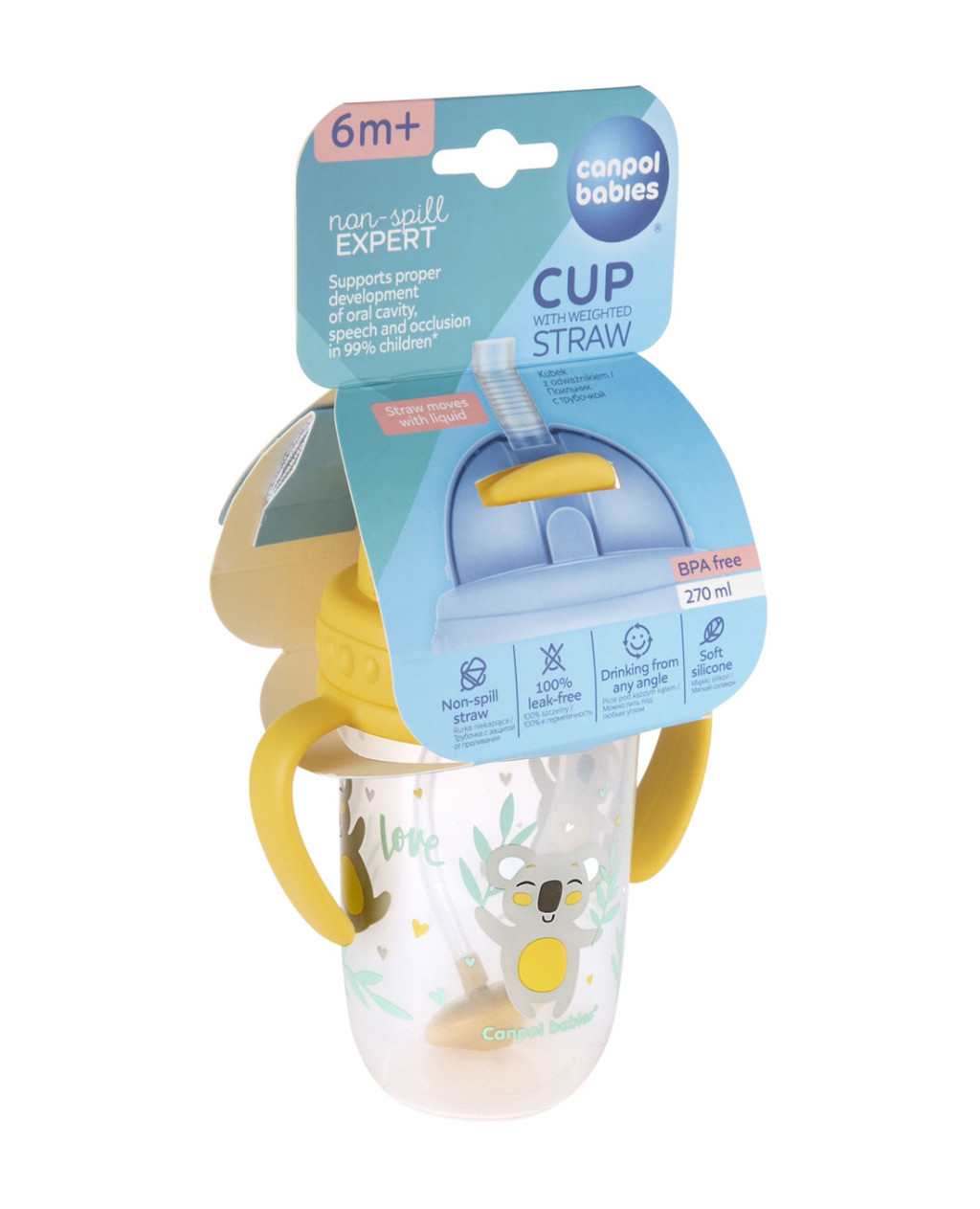 Canpol szívószálas itatópohár #6hó #270ml #Exotic sárga #56-606-YEL