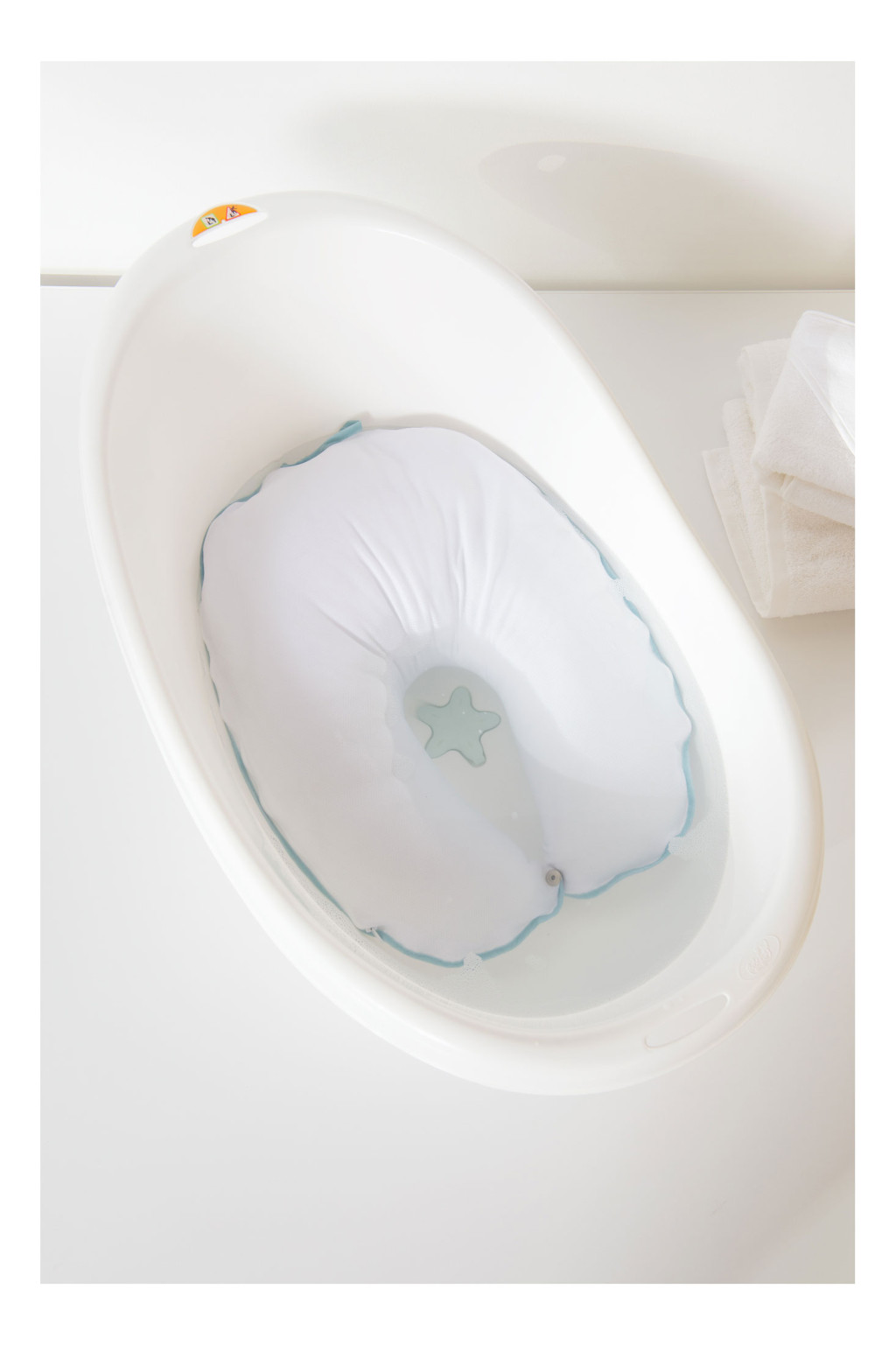 A fürdőpárna egy igazi vízipárna, amin a gyermek kényelmesen el tud helyezkedni ülő vagy fekvő testhelyzetben. Használatával a fürdetést végző személy kezei szabadon maradhatnak, így könnyedén lemosdathatják a gyermeket vagy akár játszhatnak vele. Újszülöttkortól használható, a gyermekkel együtt fejlődik.