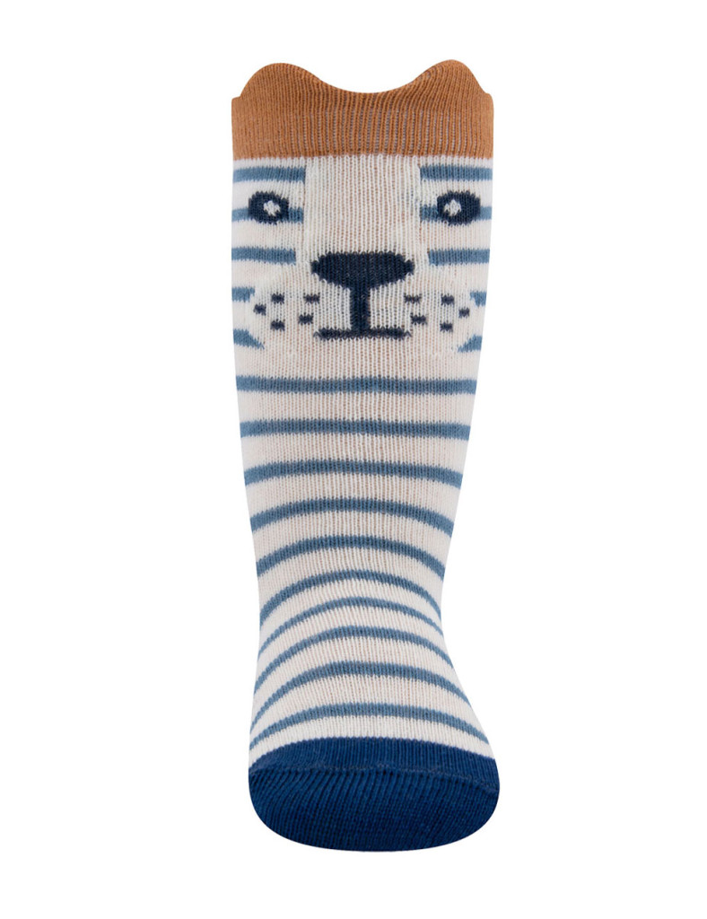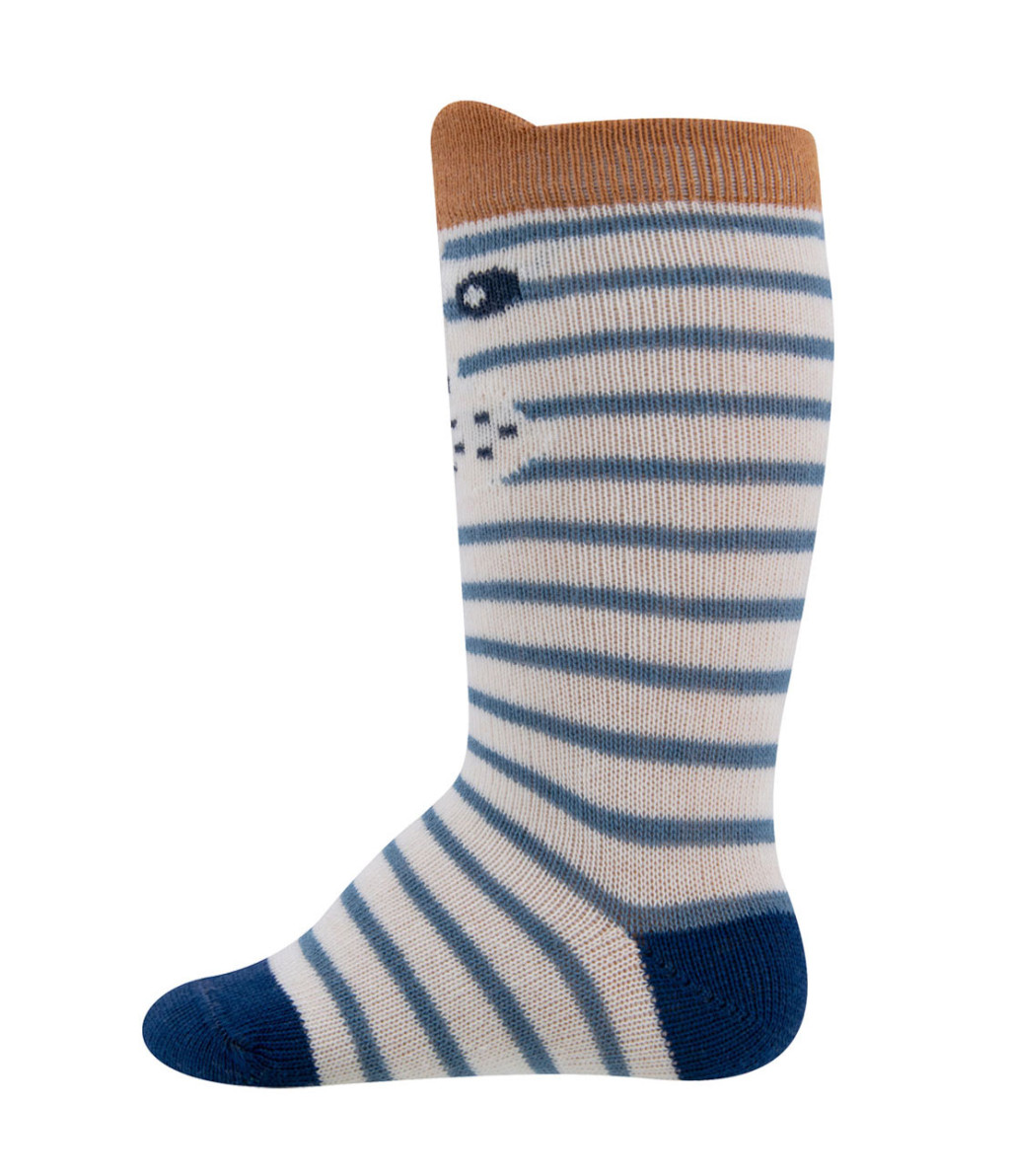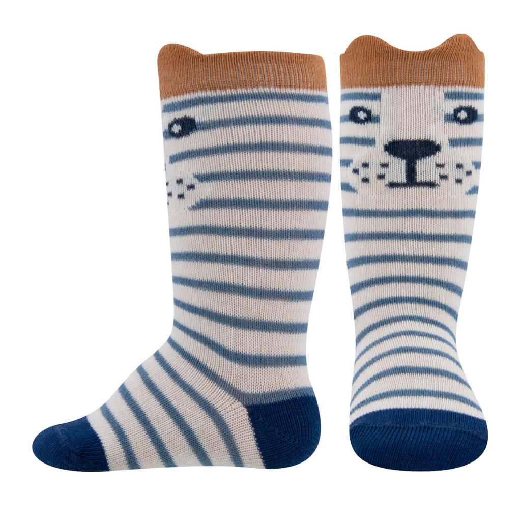 Egy pár, 17-18-as méretű, kényelmes Ewers zokni, 68-es méretű ruhát viselő babának.