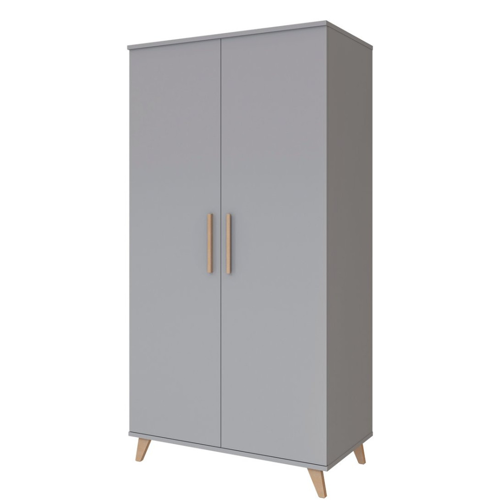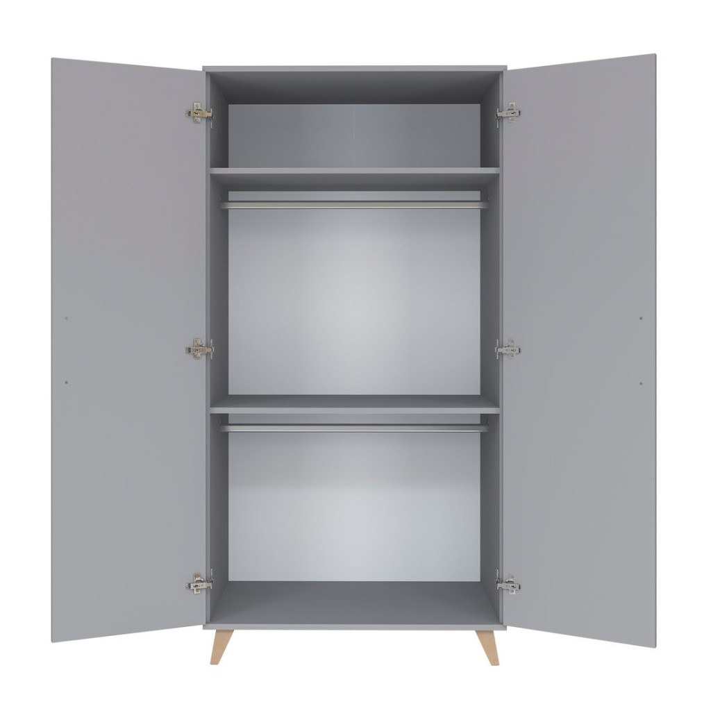 A kétosztású szekrény ideális választás, hiszen bőséges helyet biztosít kisbabád első holmijainak. Tökéletesen kombinálható a bútorcsalád többi darabjával, így könnyedén kialakítható egy olyan gyerekszoba, amit a kicsik soha nem unnak meg. A szekrény belső tere 2 db fix polcból és további 2 db akasztó rúddal került kiegészítésre. A szekrény stabil, kecses lábainak köszönhetően könnyedén lehet takarítani alatta.