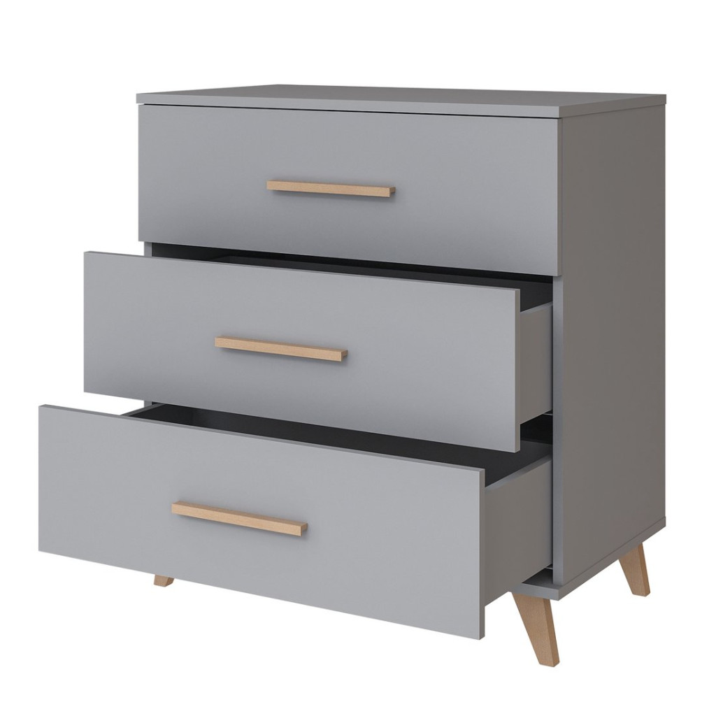 A komód 3 db 46 literes kapacitású fiókjának köszönhetően bőven lehet hely kisbabád holmijai számára. A komódhoz pluszba vásárolható pelenkázó toldalék egyszerű helyezhető fel és le a komódról, így a pelenkázási időszak utána is egy gyönyörű, teljesértékú komód marad, melyekre a játékoktól kezdve a könyveken át, bármivel bepakolható. A bútor minőségi, német vasalatokkal van ellátva, melyek alulról kerültek rögzítésre, mindez hozzájárul a letisztult megjelenésthez. Sőt, finoman záródóak a fióksínek annak érdekében, hogy véletlenül se ébredjen fel babád, miközben te pakolászol benne.