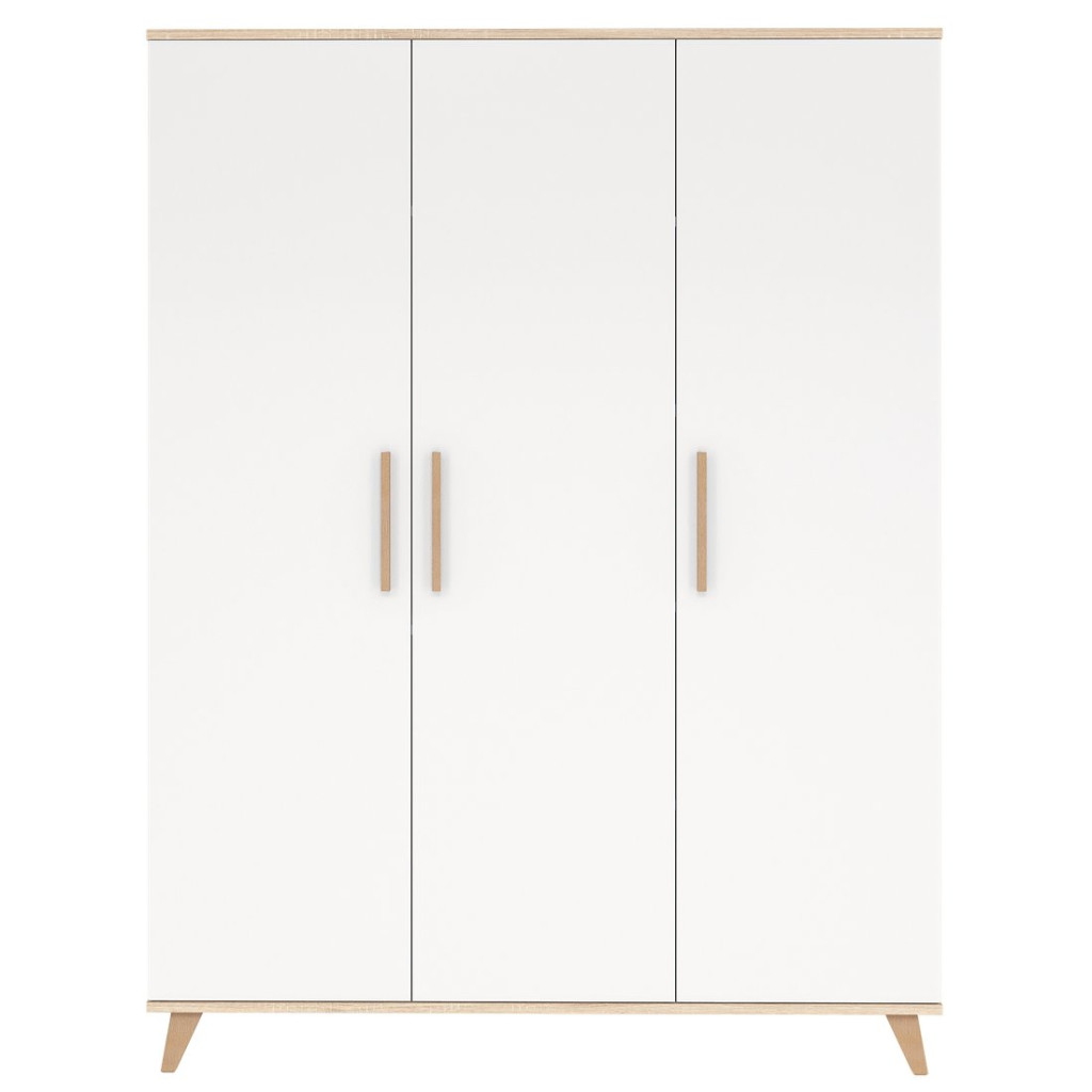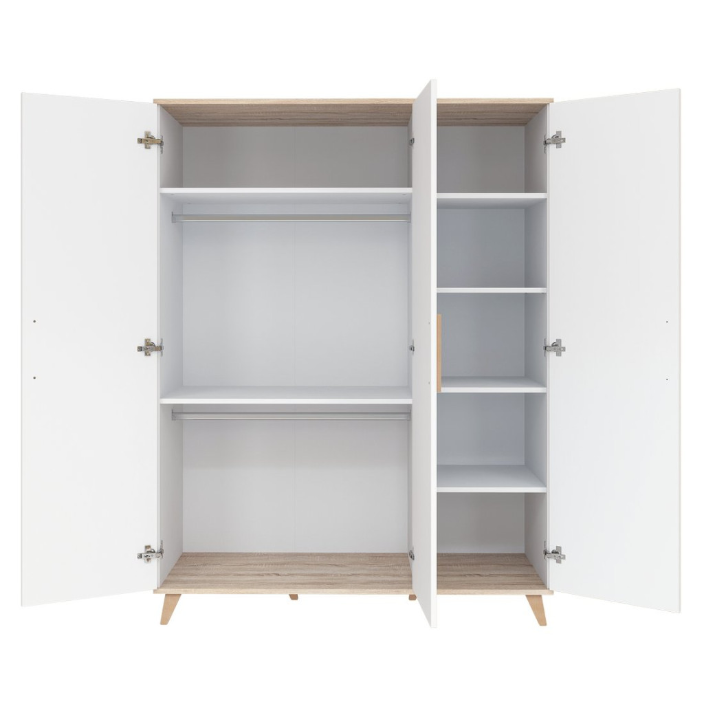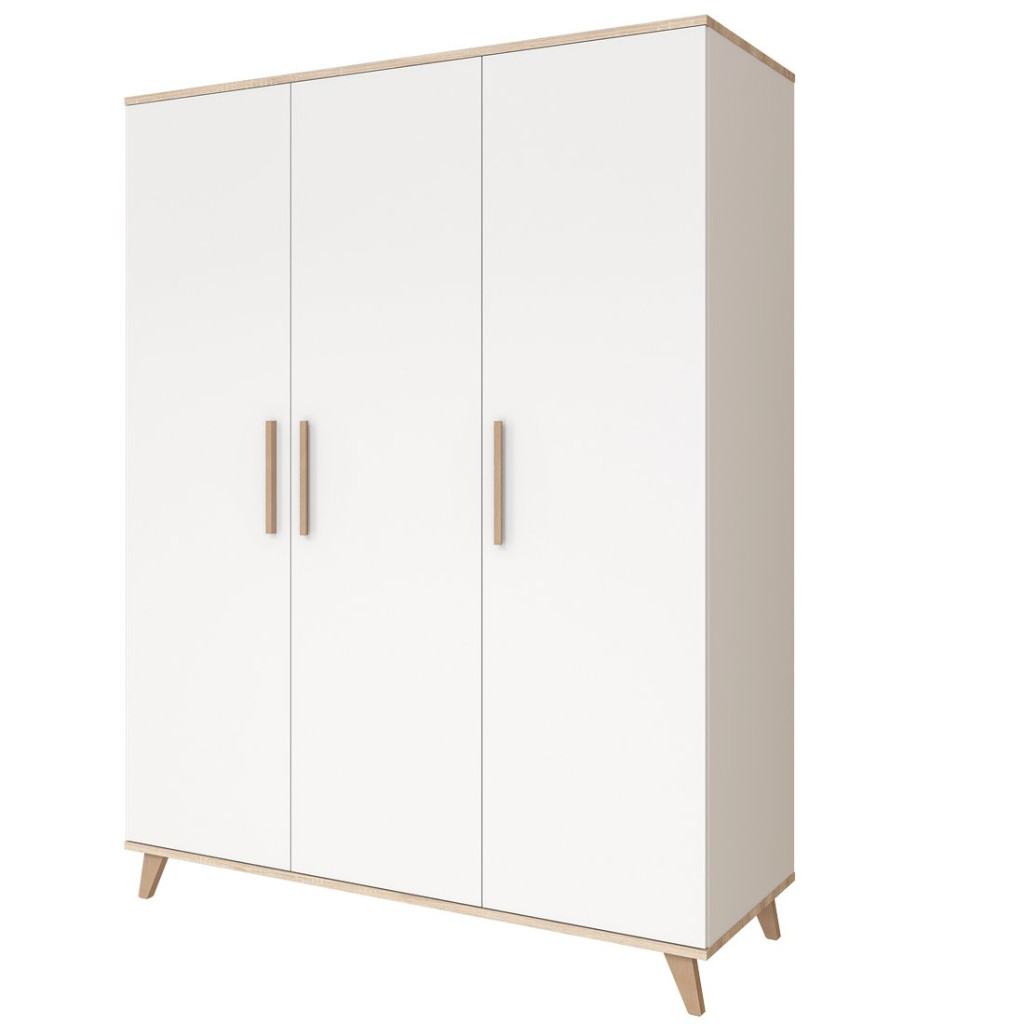 Igaz, hogy a nagyobb szekrény nagyobb helyet is foglal, cserébe rengeteg tárolási lehetőséget kínál. Az ajtók hosszúkás fogantyúkkal nyílnak, melyek meghatározó elemei a bútornak. A szekrény belső részének nagyobb elosztásnál 2 db akasztórúd és 2 db fix polc áll a rendelkezésedre babád holmijainak elrendezésére, míg a harmadik elosztás végig polcozva van, ott összesen 4 db polc áll rendelkezésre pakoló felületként. Továbbá újszülött kortól akár felnőttkorig van lehetőség használni a szekrényt. A szekrény stabil, kecses lábainak