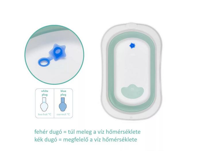 Csúszásmentes lábak és hőmérsékletmérő a lefolyóban. Ideális útközben, könnyen nyitható, praktikus akasztóval a falra szereléshez, leeresztő dugóval hőmérsékletméréssel