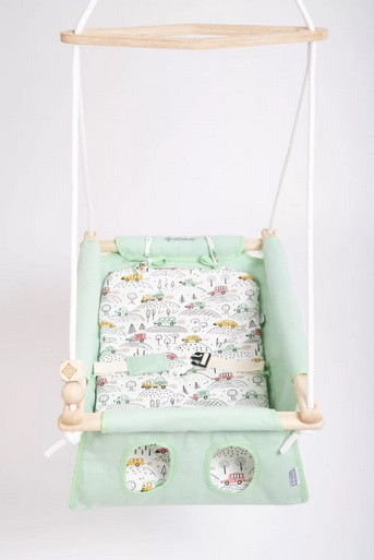 Biztonságos és örömteli hintázási élményét nyújt a babáknak, amelyben fekvő helyzetben pihenni, ülő helyzetben pedig játszani is tudnak.