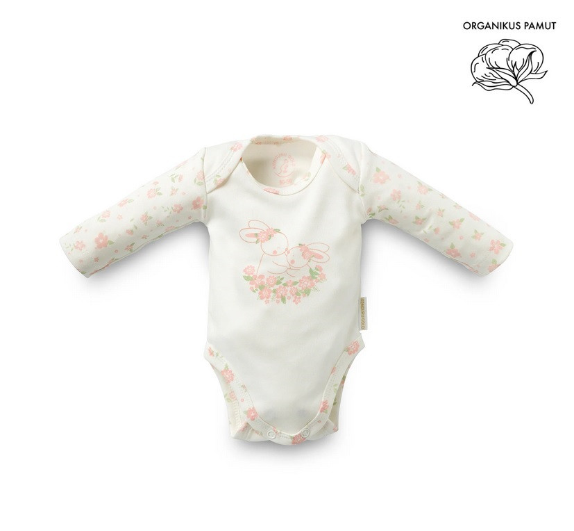 Kenguru Gold Body pamut békanyakú #56-62 #Ekrü virágos pánttal nyuszival #1834