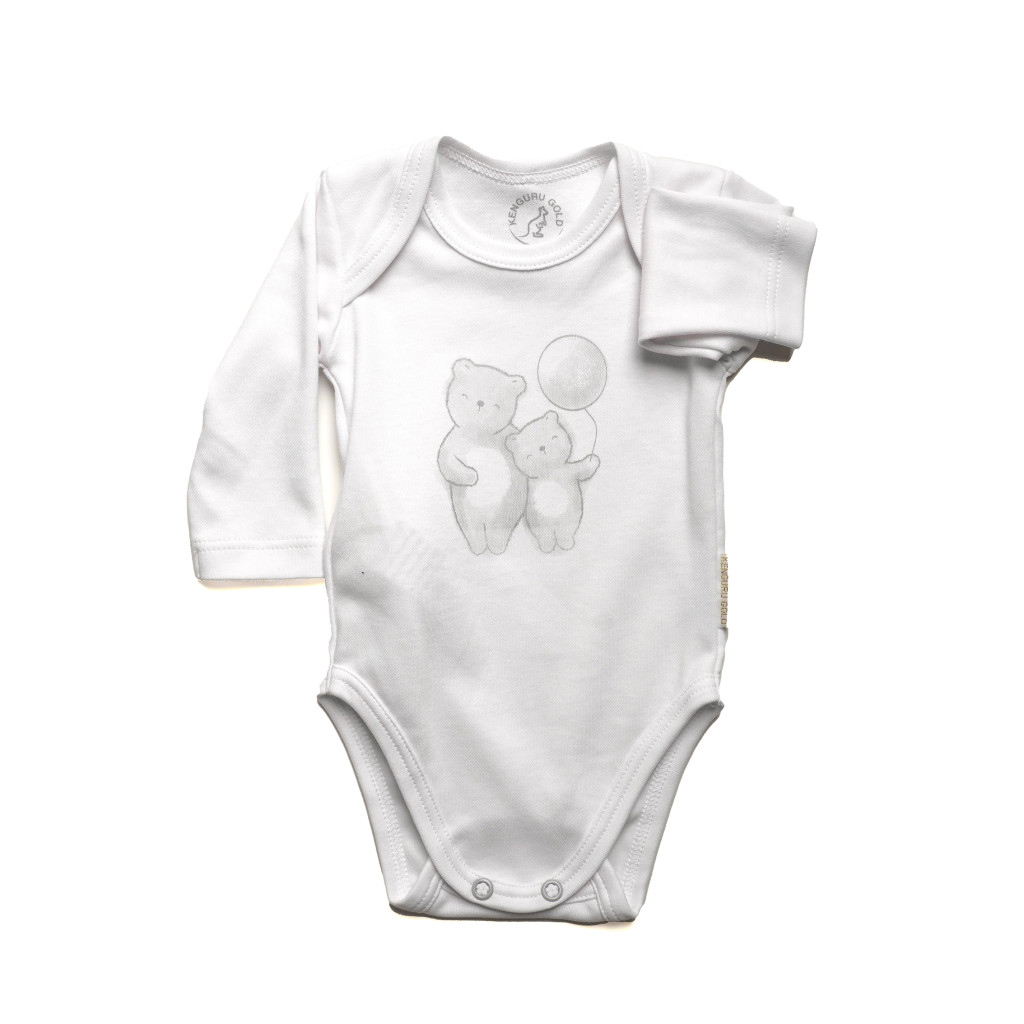 Kenguru Gold pamut békanyakú Body #50-56 #Fehér lufis maci #2393