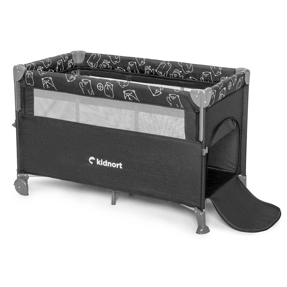 Kidnort Livsmiljö utazóágy-babaöböl 2 szintes kerekes kibúvós #premium fekete