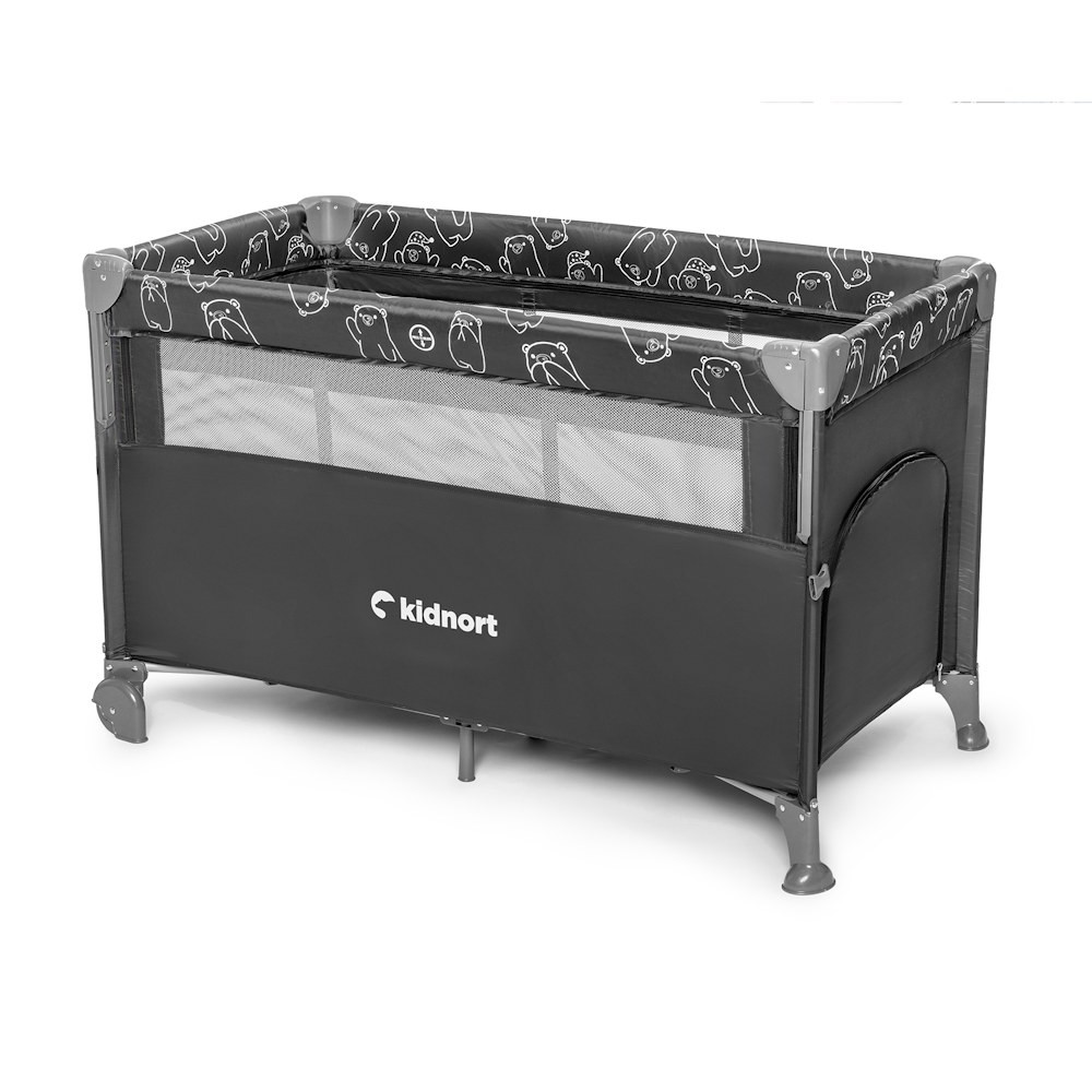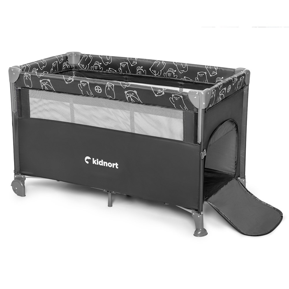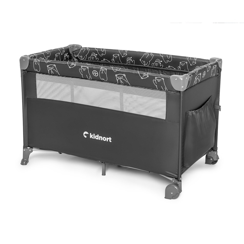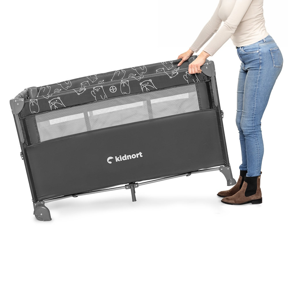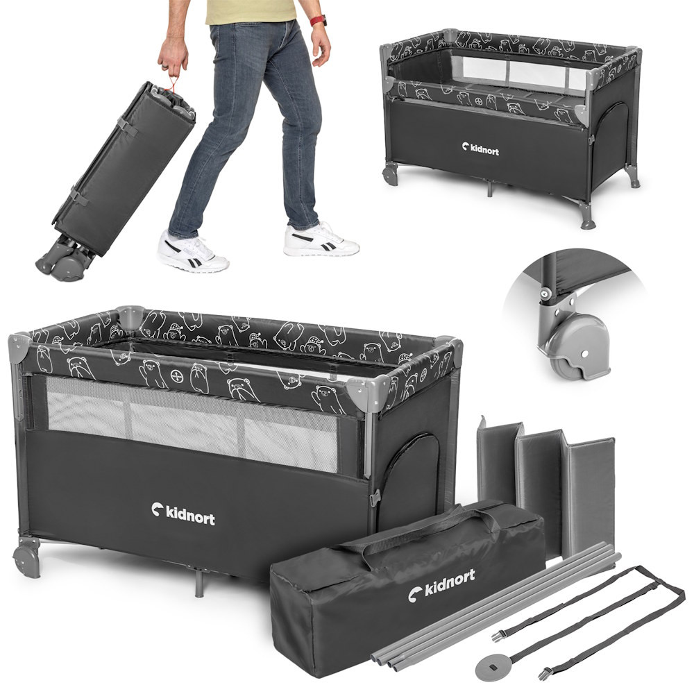 Kidnort Naste utazóágy-babaöböl 2 szintes kerekes kibúvós #fekete