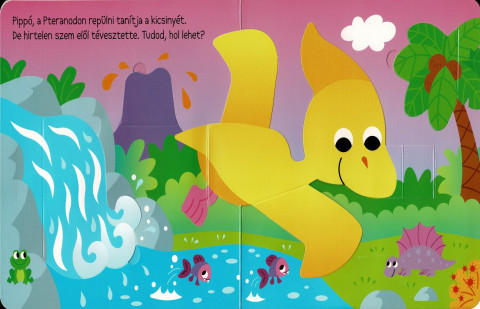 A lapozó könyv varázslatos utazásra hív a múltba, ahol a gyerekek játékosan fedezhetik fel a dinoszauruszok titokzatos életét. Minden oldalon egy újabb kaland vár rájuk, ahol a gyerekek felnyithatják a lapokat, hogy megtudják, melyik dinoszaurusz bújt el.