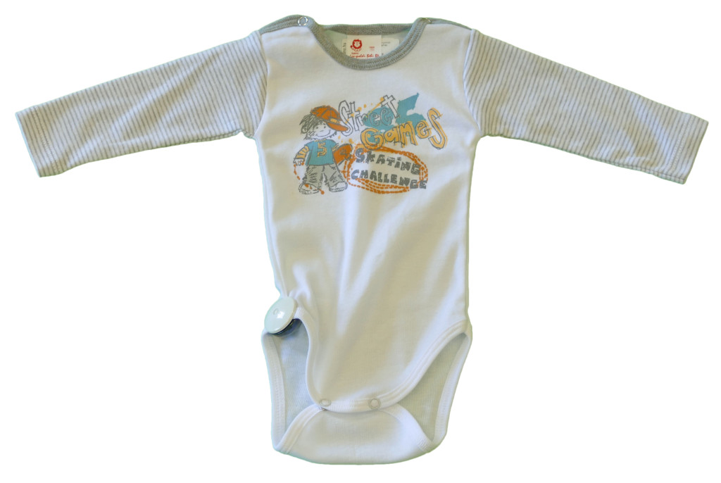 Leopoldi Body hosszú ujjú #pamut #filmnyomott #80 #fehér szürke-csíkos Street Games #110177