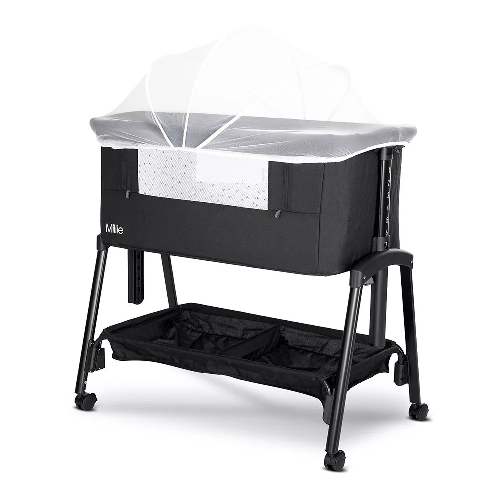 • Ágykerethez külön rögzítő pánttal fixálható, ha a szülői ágy kialakítása megengedi, így alvás közben nem tudod eltolni a bölcsőt.