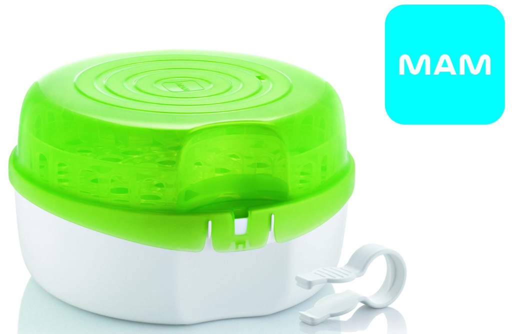 A Mam mikrohullámú sterilizáló doboz segítségével a háztartásokban előforduló baktériumok 99%-át eltüntetheted a kisbabád által használt cumisüvegekről és cumikról. A legtöbb mikrohullámú sütővel kompatibilis.