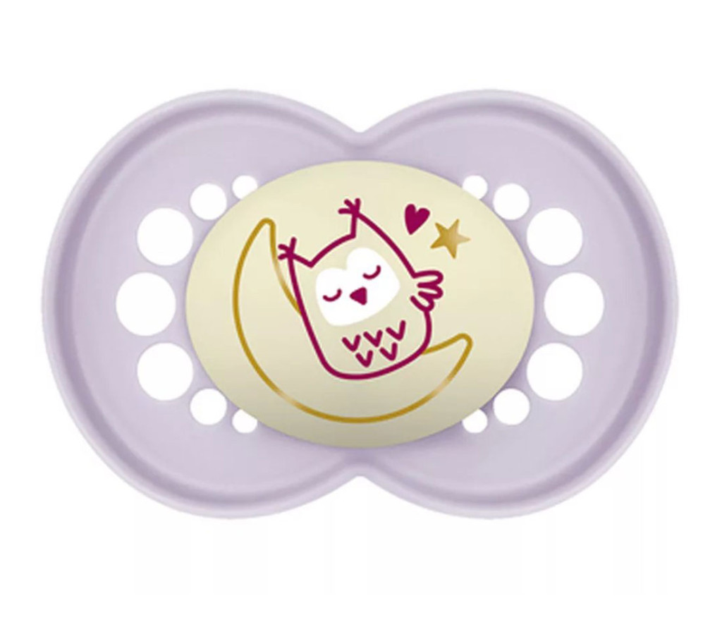 16 hónapos kor felett javasolt, 2 darabos, sötétben világító Mam Original Night szilikon játszócumi. BPA mentes.