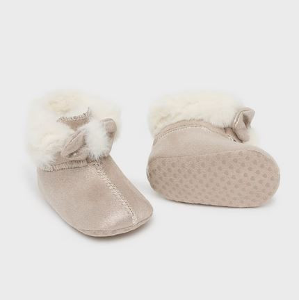 Mayoral Newborn babacipő. Velúr és a textil anyag kombinációjából