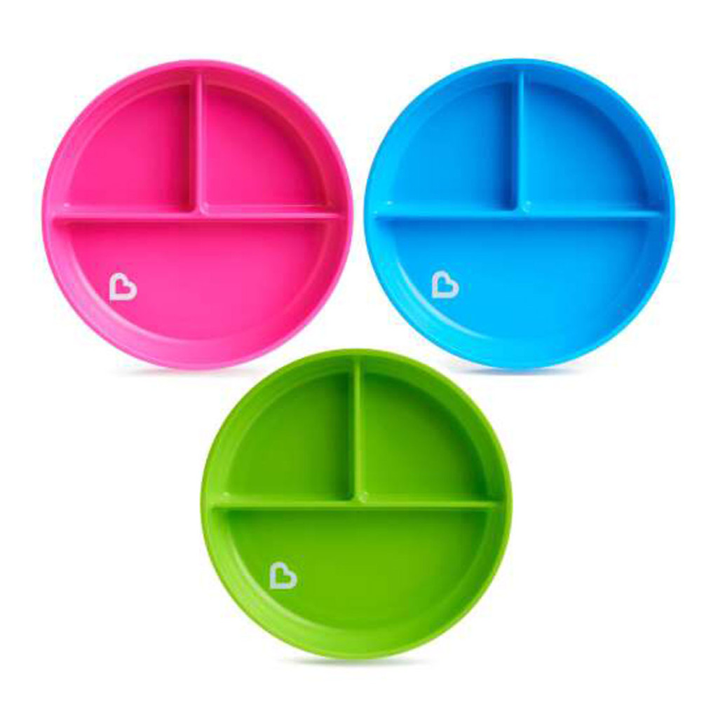 A Munchkin tapadókorongos rekeszes tányér segítségével egy kis rendszerezettséget vihetsz a baba önálló evési próbálkozásaiba.