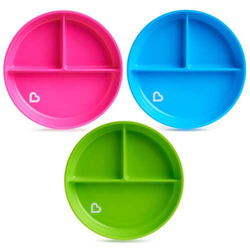 A Munchkin tapadókorongos rekeszes tányér segítségével egy kis rendszerezettséget vihetsz a baba önálló evési próbálkozásaiba.