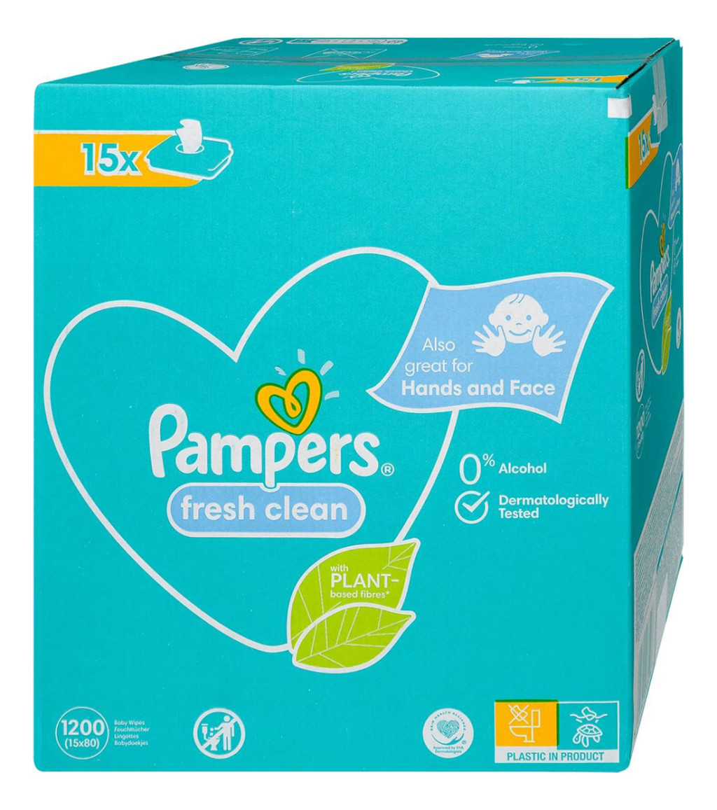 A növényi eredetű rostok felhasználásával készült Pampers Fresh Clean nedves törlőkendő alaposan tisztítja a pelenka alatti területeket, de a kéz és a kisbaba arcának törlésére is alkalmas. Formulája óvja a bőr természetes pH-értékét, nem tartalmaz alkoholt, színezéket. A Pampers Fresh Clean nedves törlőkendő bőrgyógyászatilag tesztelt, a Skin Health Alliance bőrgyógyászainak jóváhagyásával.